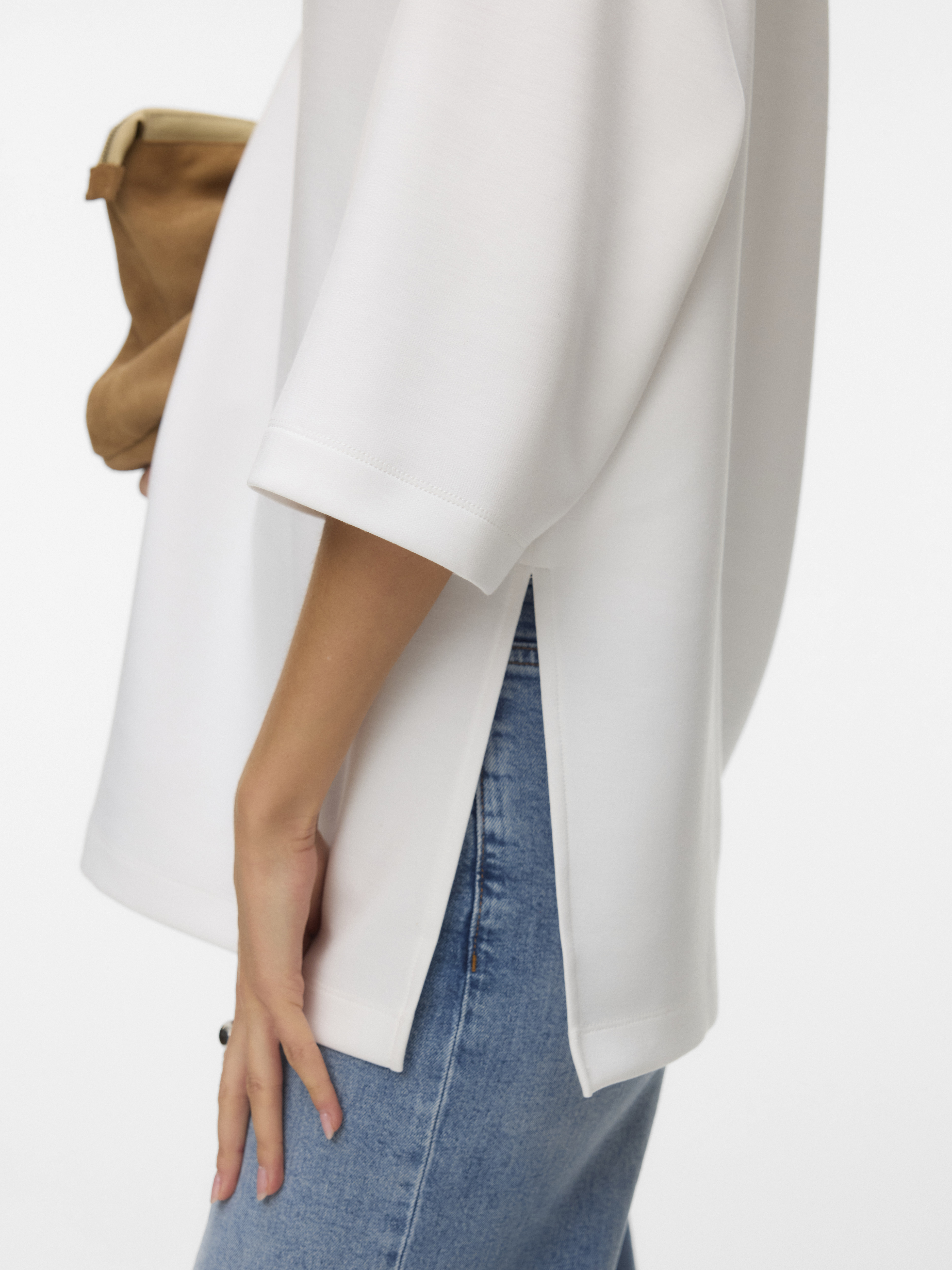 Mille T-shirten har 3/4-ærmer, der giver den et sofistikeret touch og gør den perfekt til både hverdag og mere afslappede arrangementer. Den runde halsudskæring tilføjer et klassisk element til designet, hvilket gør den nem at kombinere med andre tøjstykker. Desuden er T-shirten udstyret med en slids i siden, der ikke kun bidrager til komforten, men også tilføjer en ekstra detalje til det overordnede design. Denne T-shirt er et ideelt valg for dem, der ønsker et alsidigt stykke tøj, der nemt kan styles op eller ned.
