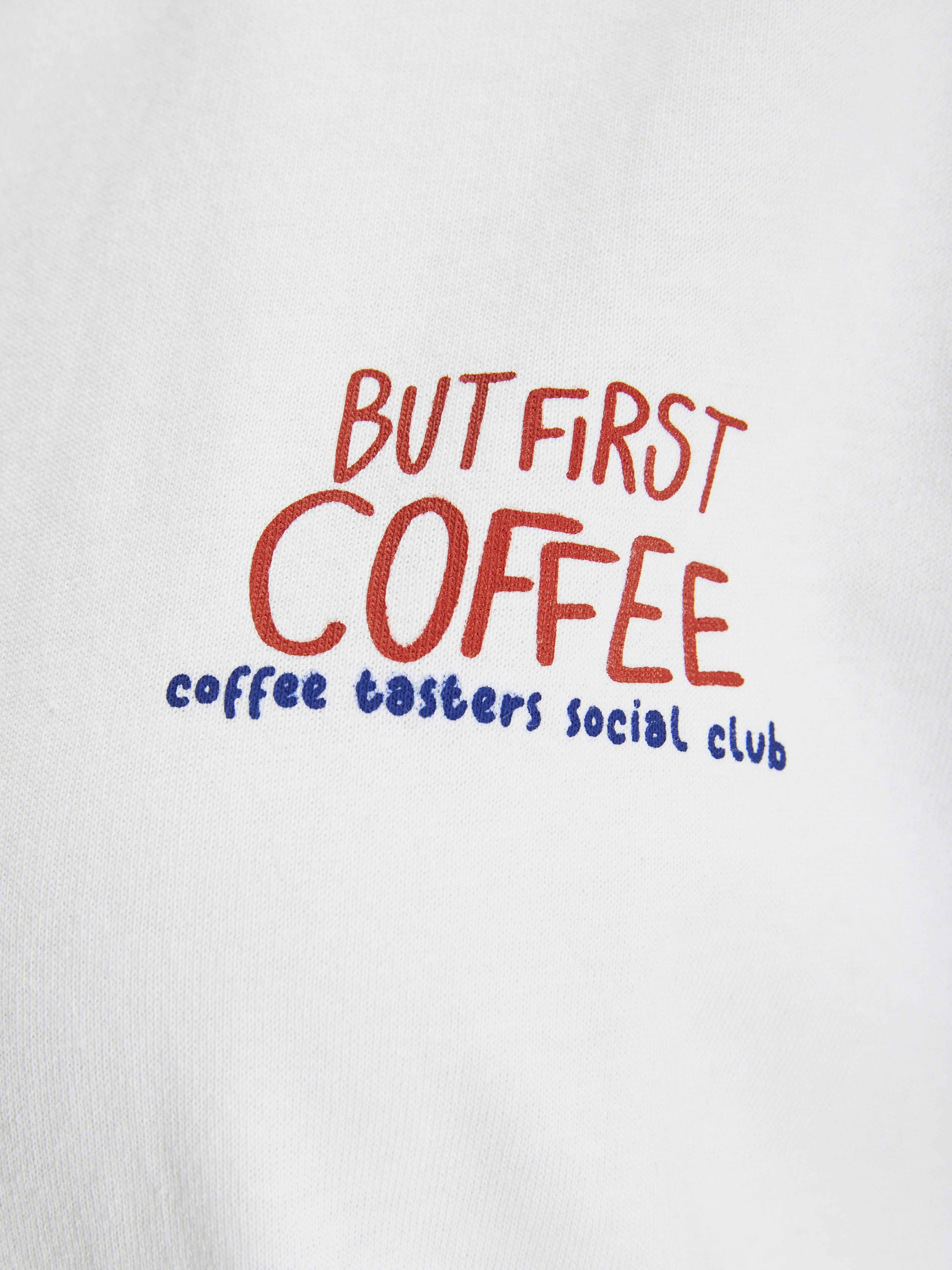 Nina T-shirt, Bright White But First Coffee, L