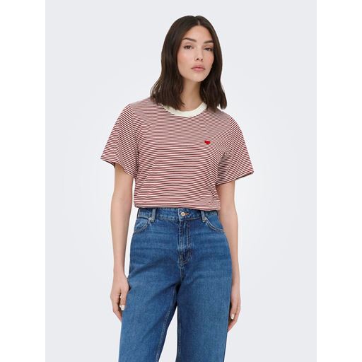 Pisa T-shirt, Cloud Dancer/Rhubarb Stripe, XXL