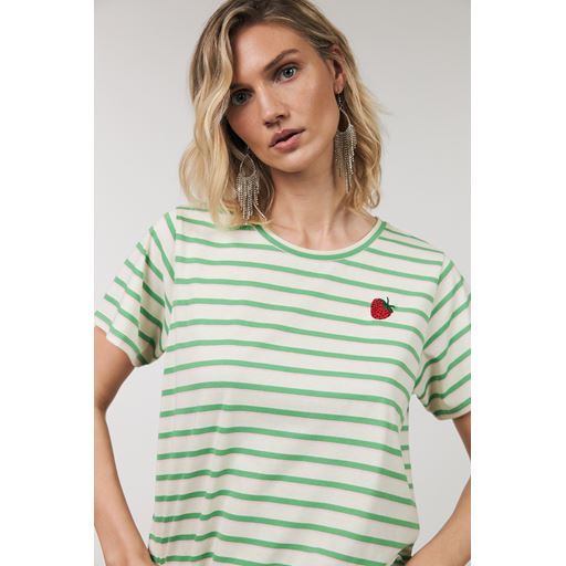 - Jordbærmotiv på brystet