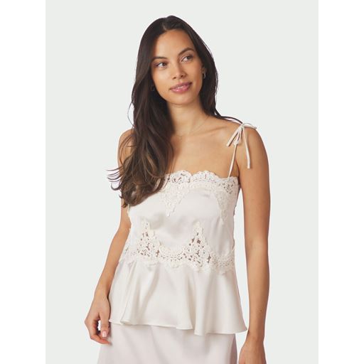 Kaela Heavy Sateen Lace Top, Pearl, 42