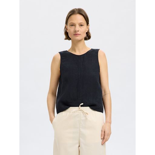 Linna Reversible Linen Top, Black, 34
