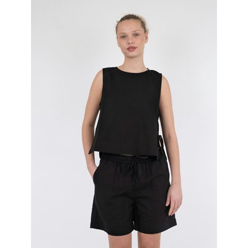 Svetlana Linen Top, Black, 34