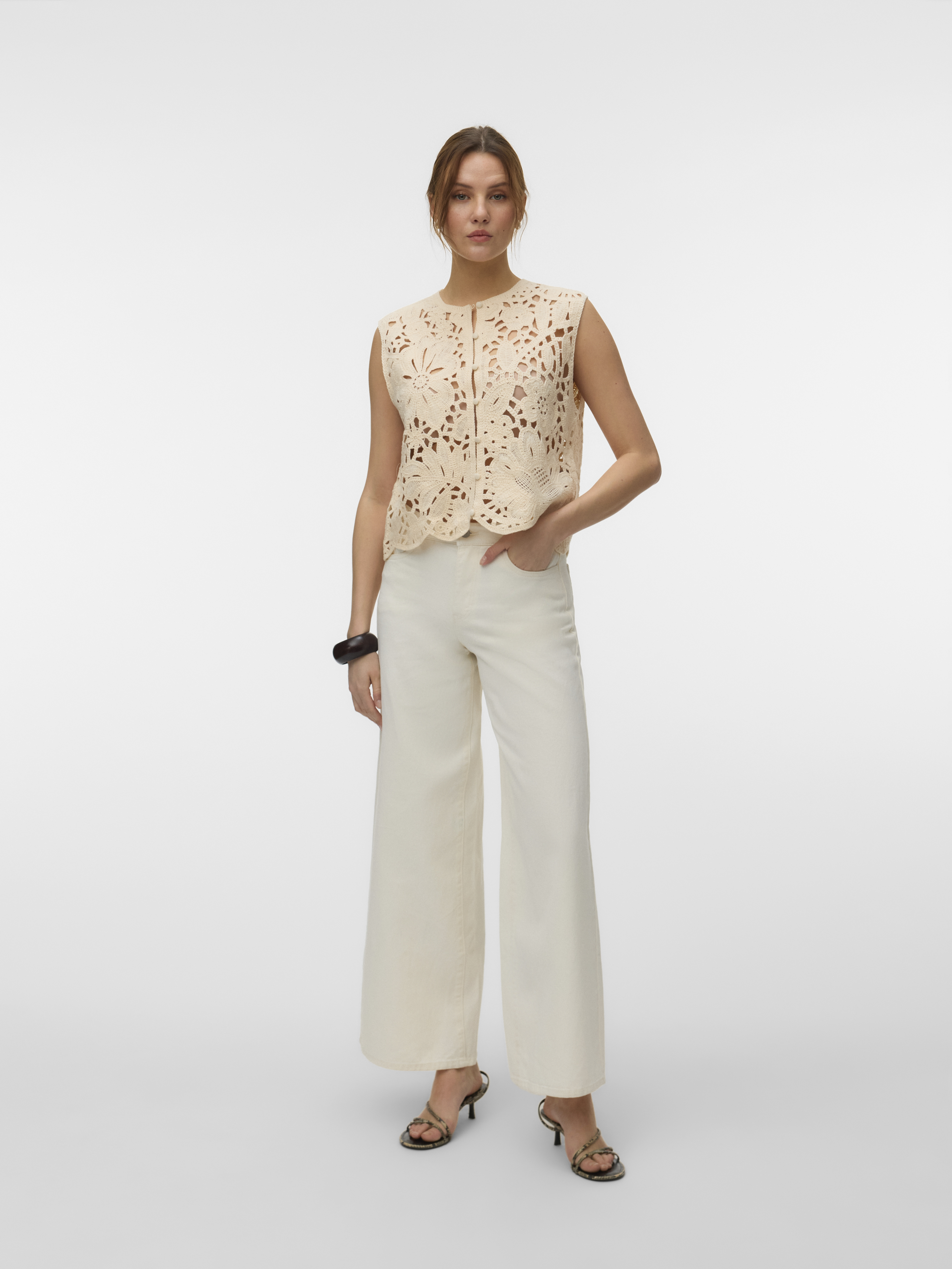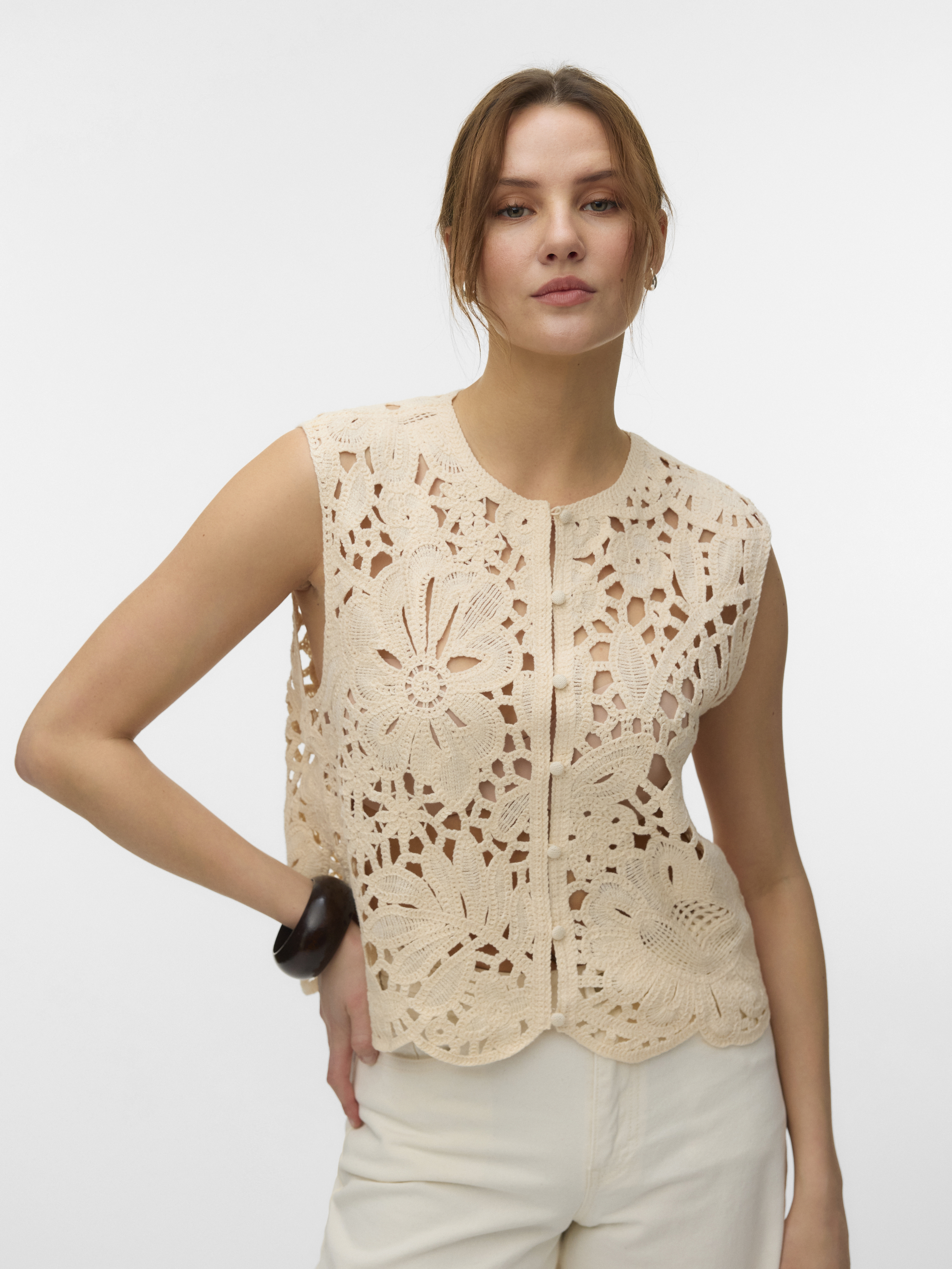Alison O-Neck Vest, Bone White, L