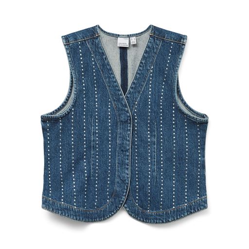 Carley Rhinetone Vest, Medium Blue Denim, XL