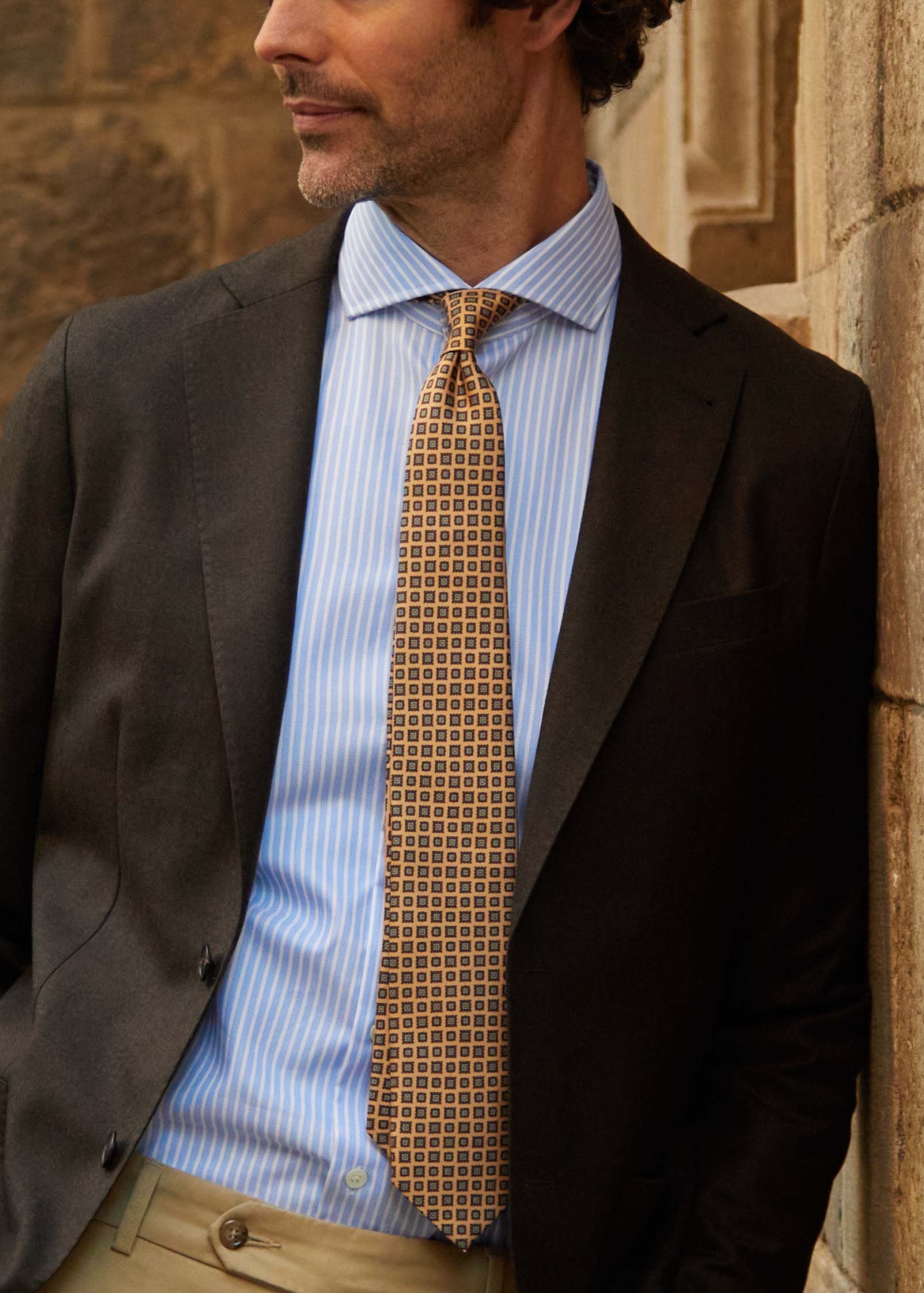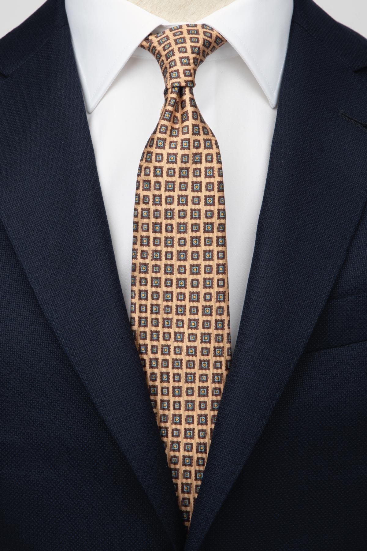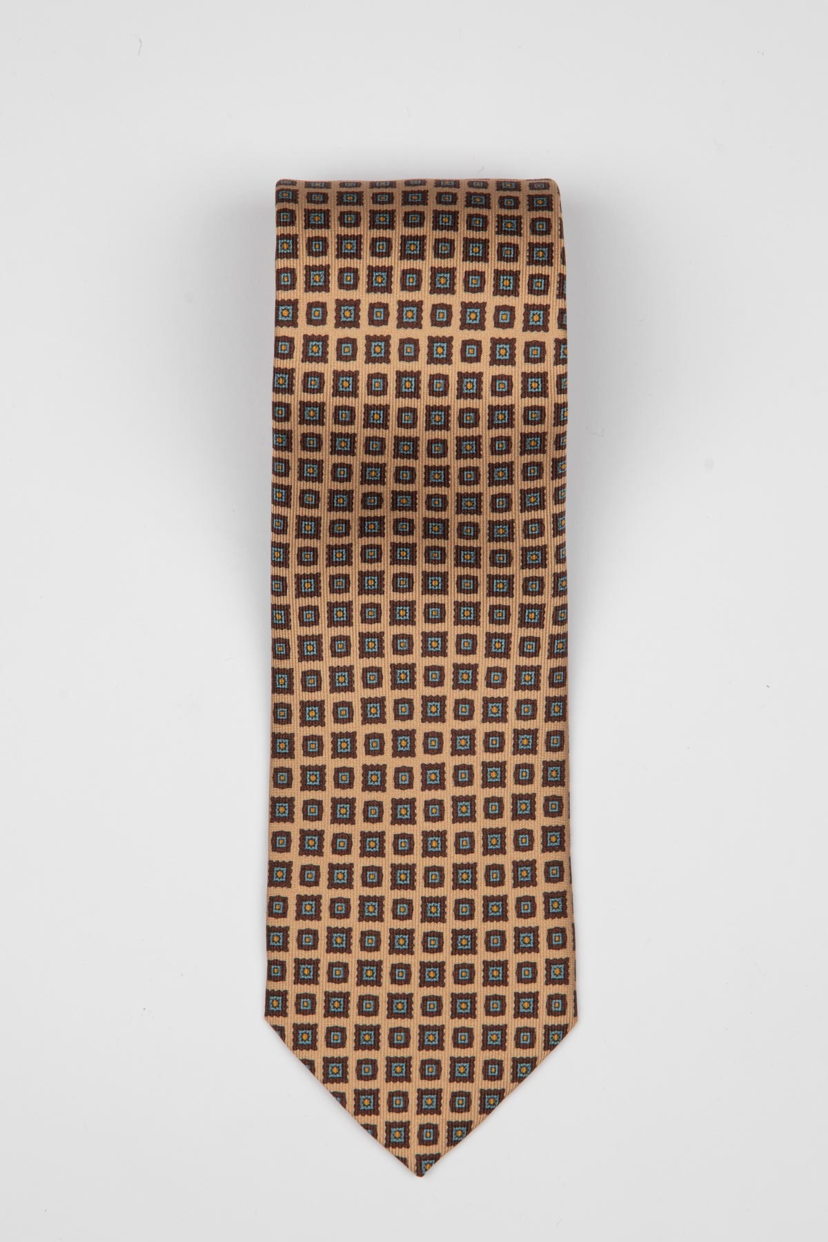 Opdag den sofistikerede elegance med Diamond Silk Slips fra AN IVY. Dette slips er en fremragende tilføjelse til enhver garderobe og bringer et strejf af luksus til dit outfit. Det er mønstret med omhyggeligt designede detaljer, der understreger dets unikke karakter. Med en farvepalet, der omfatter nuancer af beige, brun og blå, giver dette slips dig mulighed for at tilføje en subtil farvekontrast, der passer perfekt til både formelle og afslappede sæt.