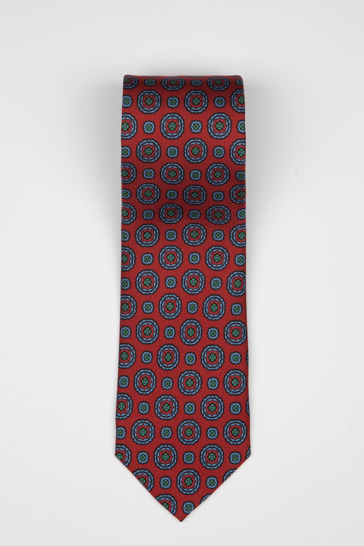 Håndlavet med stor omhu, er Medallion Silk Slips fremstillet af det fineste silke, hvilket giver en blød og luksuriøs følelse. Den silkeagtige tekstur skaber en naturlig glans, der fremhæver slipsets rige mønster og farver. Dette slips er ikke blot et tilbehør, men et statement-piece, der lover at løfte dit formelle look til et nyt niveau. Perfekt til både arbejde og særlige lejligheder, vil denne slips være en værdsat tilføjelse til enhver garderobe.