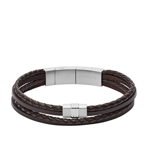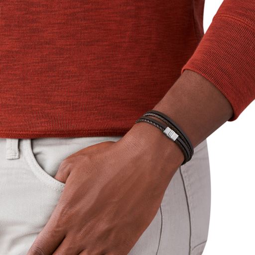 - Multi-Strand Flettet Læderarmbånd fra Fossil