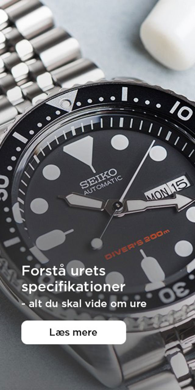 Ure kan være fulde af fagtermer, som ikke altid giver mening ved første blik. Hvad er forskellen på et mekanisk og et kvarts ur? Og betyder 10 ATM virkelig, at du kan dykke med uret? De tekniske specifikationer kan være mange og virke forvirrende. Gå på opdagelse i vores ordbog til ure, hvor vi guider dig gennem de mest almindelige begreber og funktioner, så du nemt kan forstå, hvad der gemmer sig bag specifikationerne. Du kan også læse videre nedenfor, hvor vi kort har svaret på nogle af de mest gense spørgsmål.