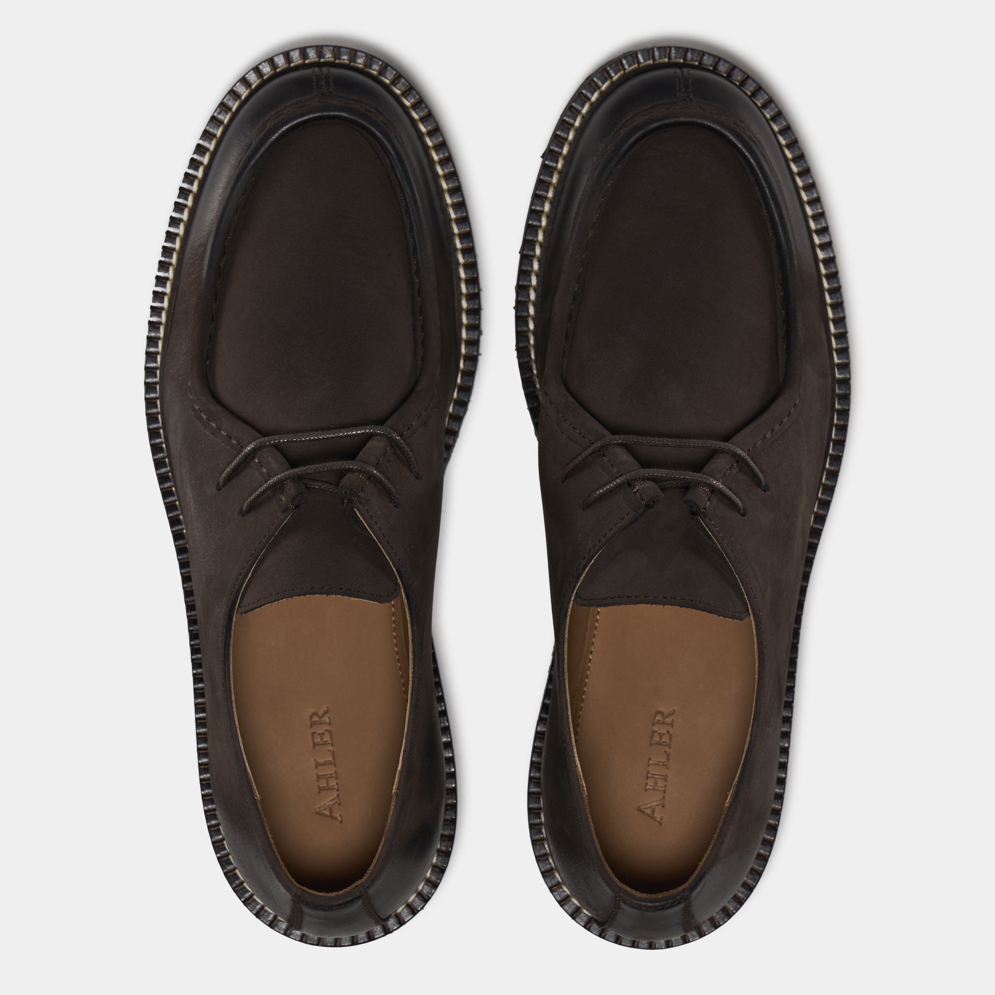 - Kontrastfarvede syninger ved sålen