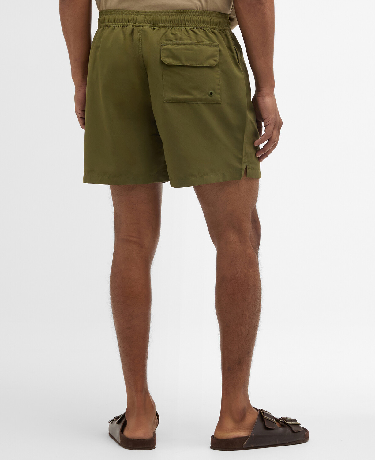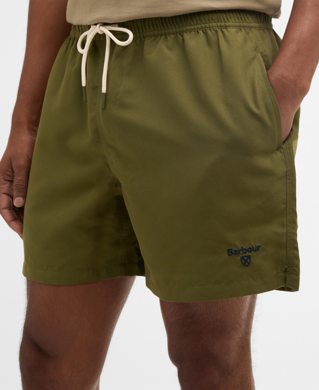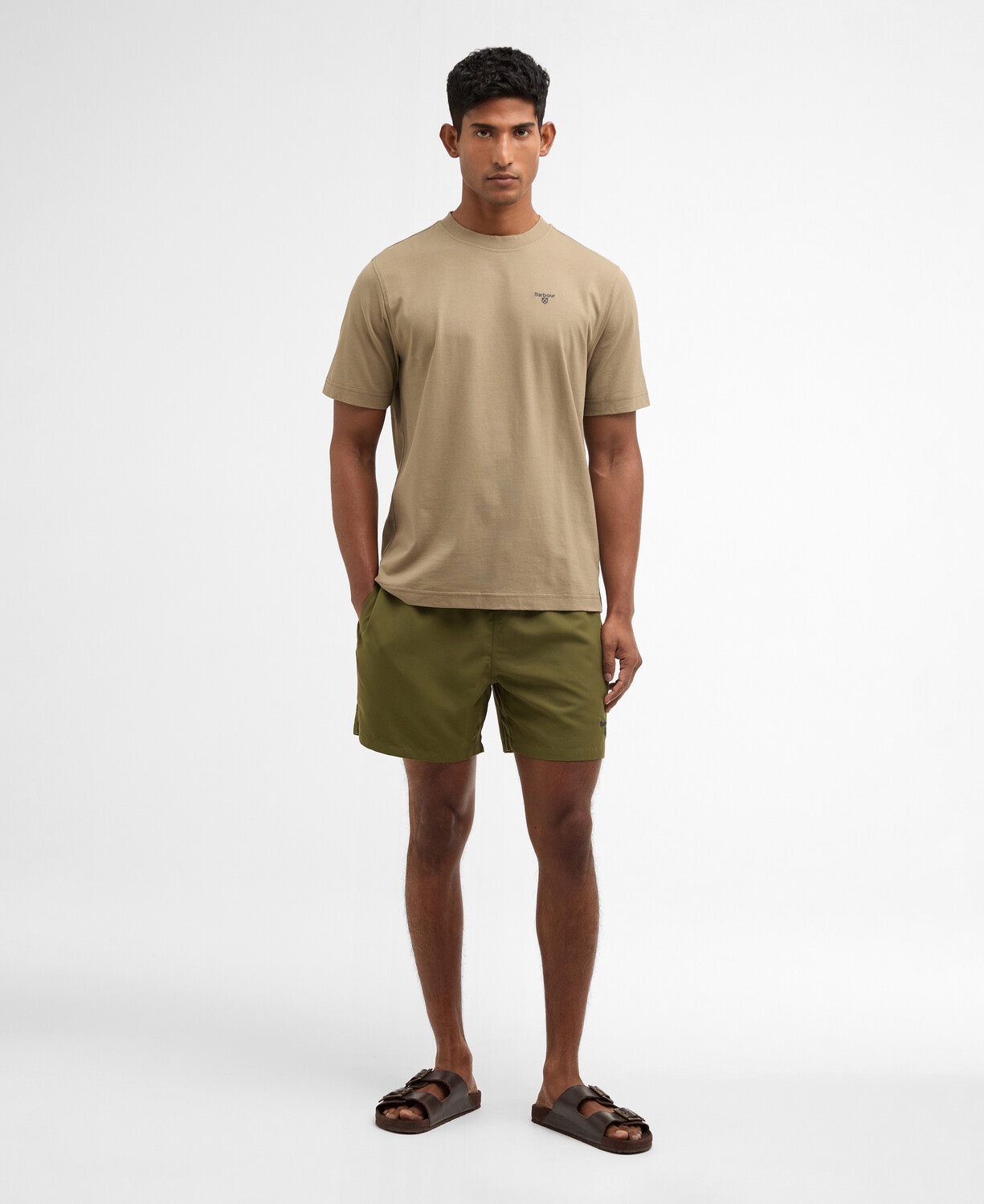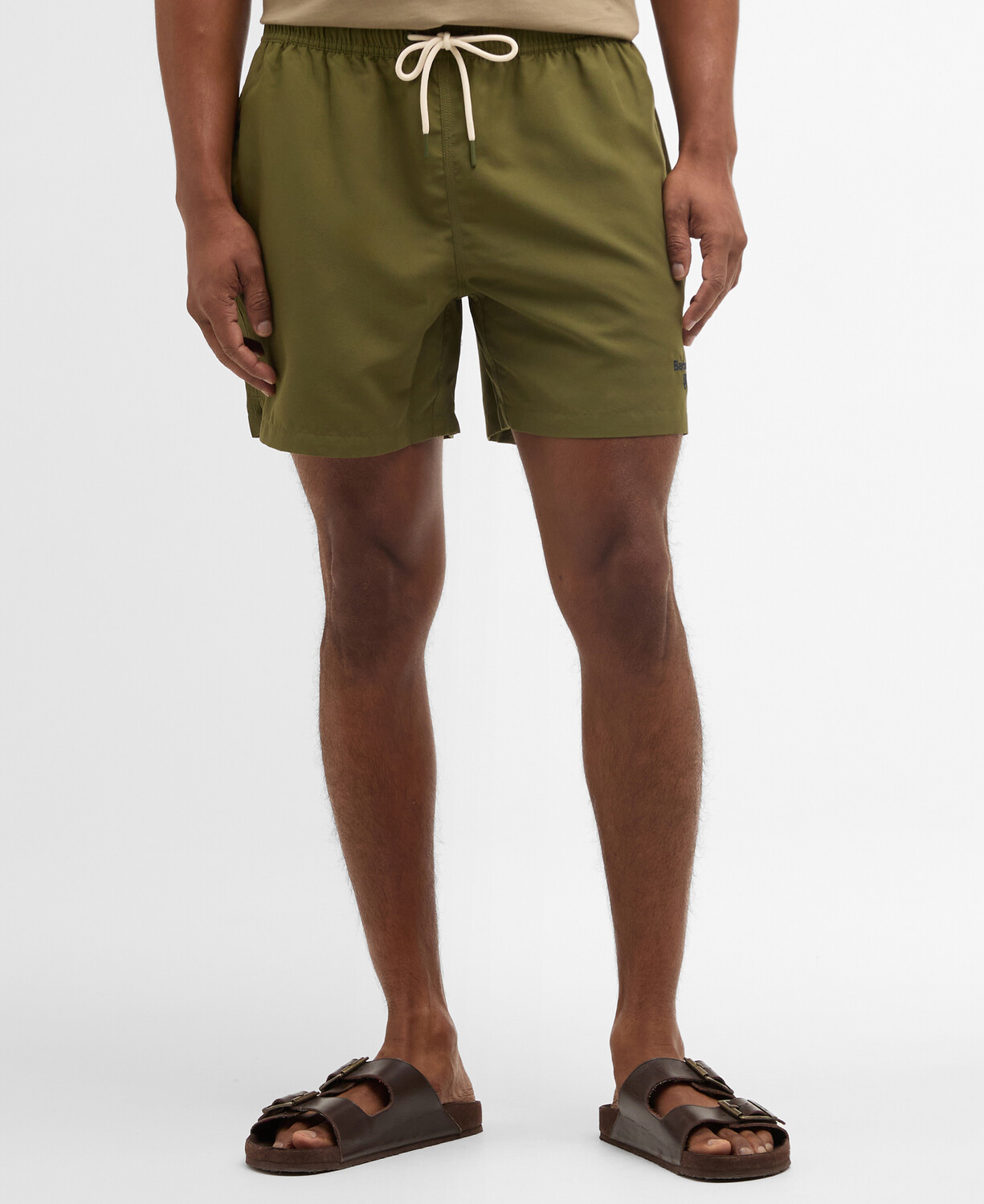 De praktiske sidelommer giver plads til småting, mens baglommen med flaplukning sikrer, at dine ejendele forbliver trygge og sikre. Et diskret logoprint på benet tilføjer et strejf af stil og brandidentitet, der gør disse badeshorts til et must-have i din sommergarderobe. Med en normal pasform er de designet til at passe de fleste kropstyper og sikre en ubesværet og behagelig pasform hele dagen. Gør dig klar til en sommer fuld af solrige eventyr med disse elegante badebukser fra Barbour, der kombinerer praktiske funktioner med et moderne udseende.