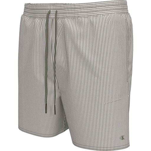 Medium Drawstring Seersucker Badeshorts, Deep Lichen Green/White, XL