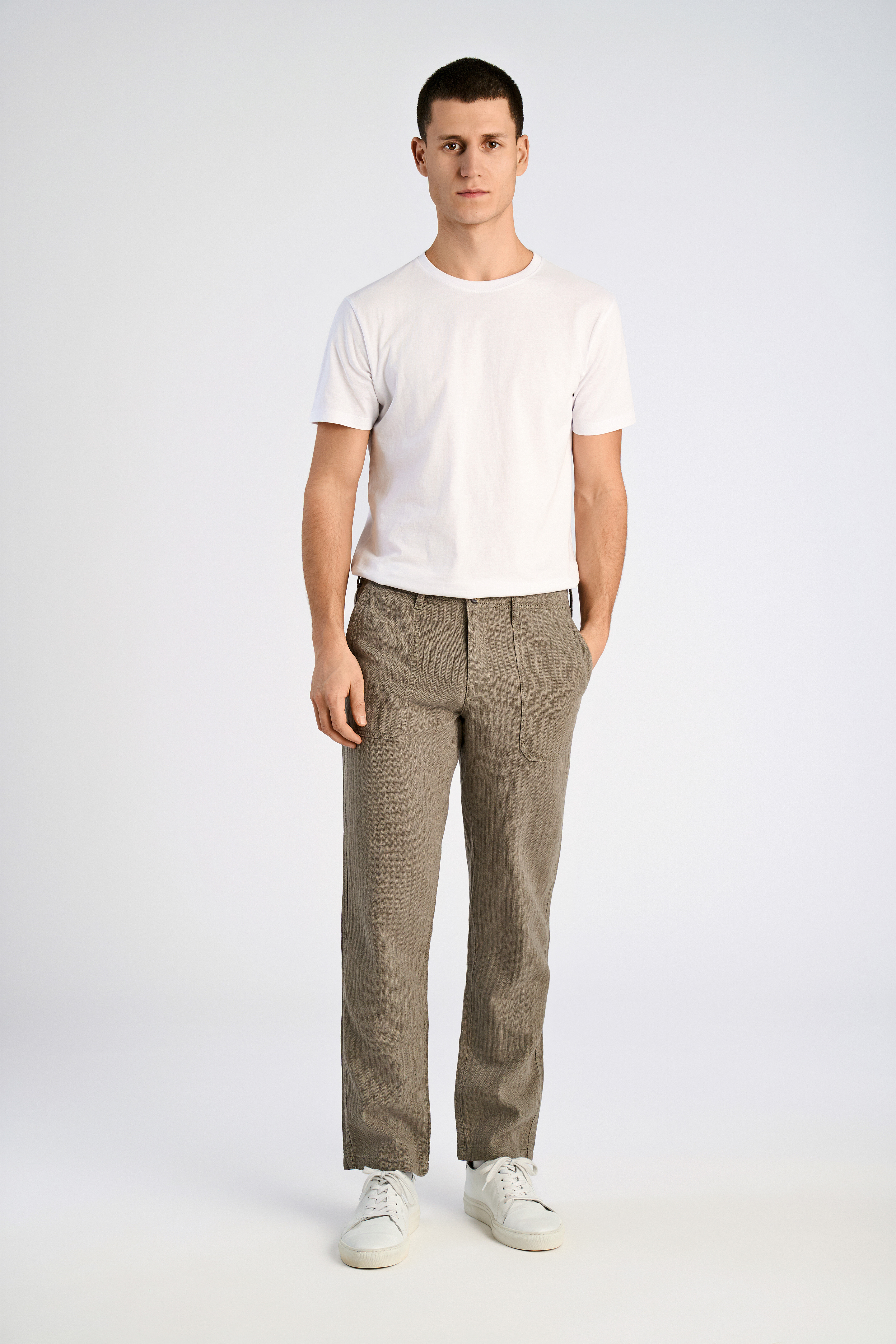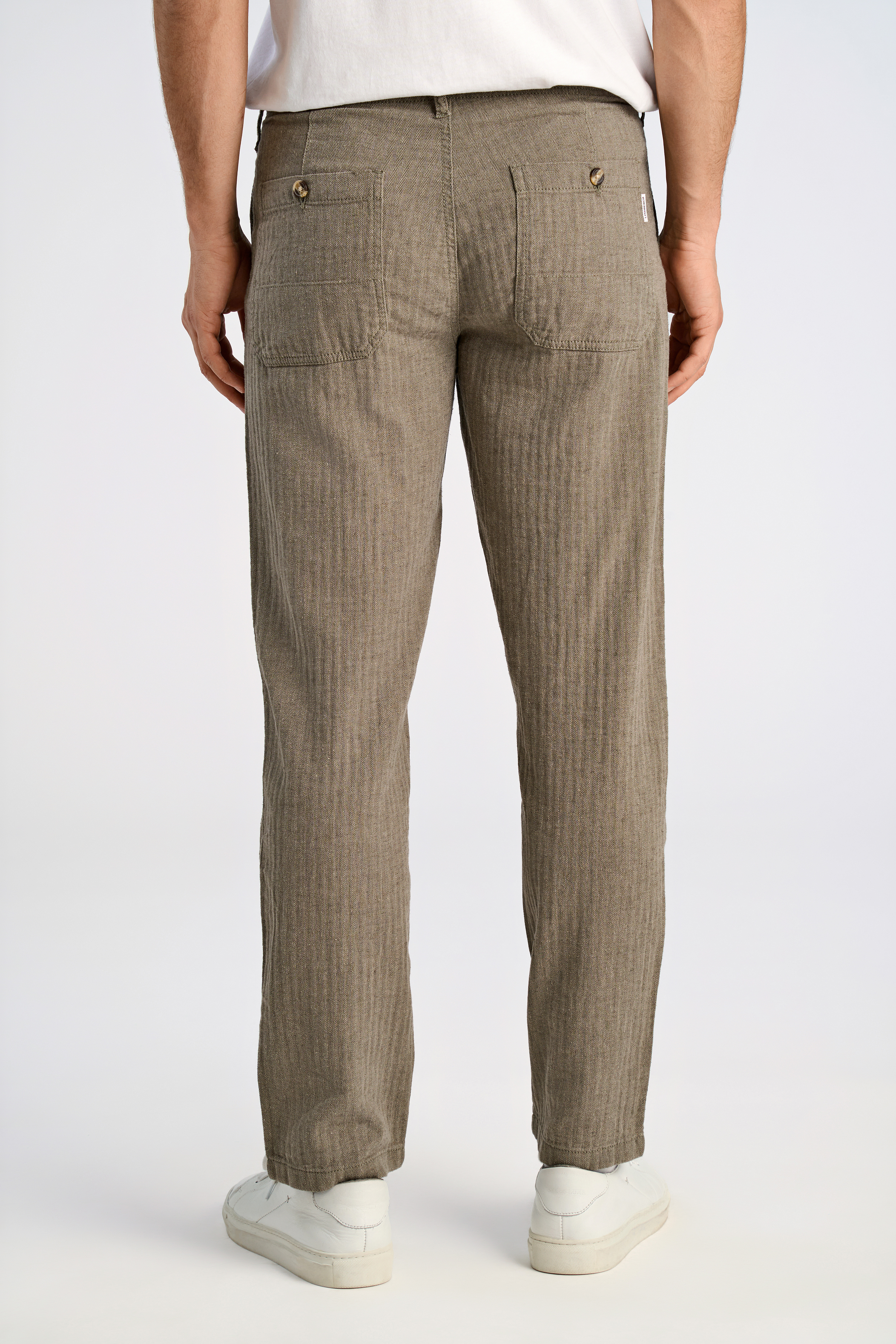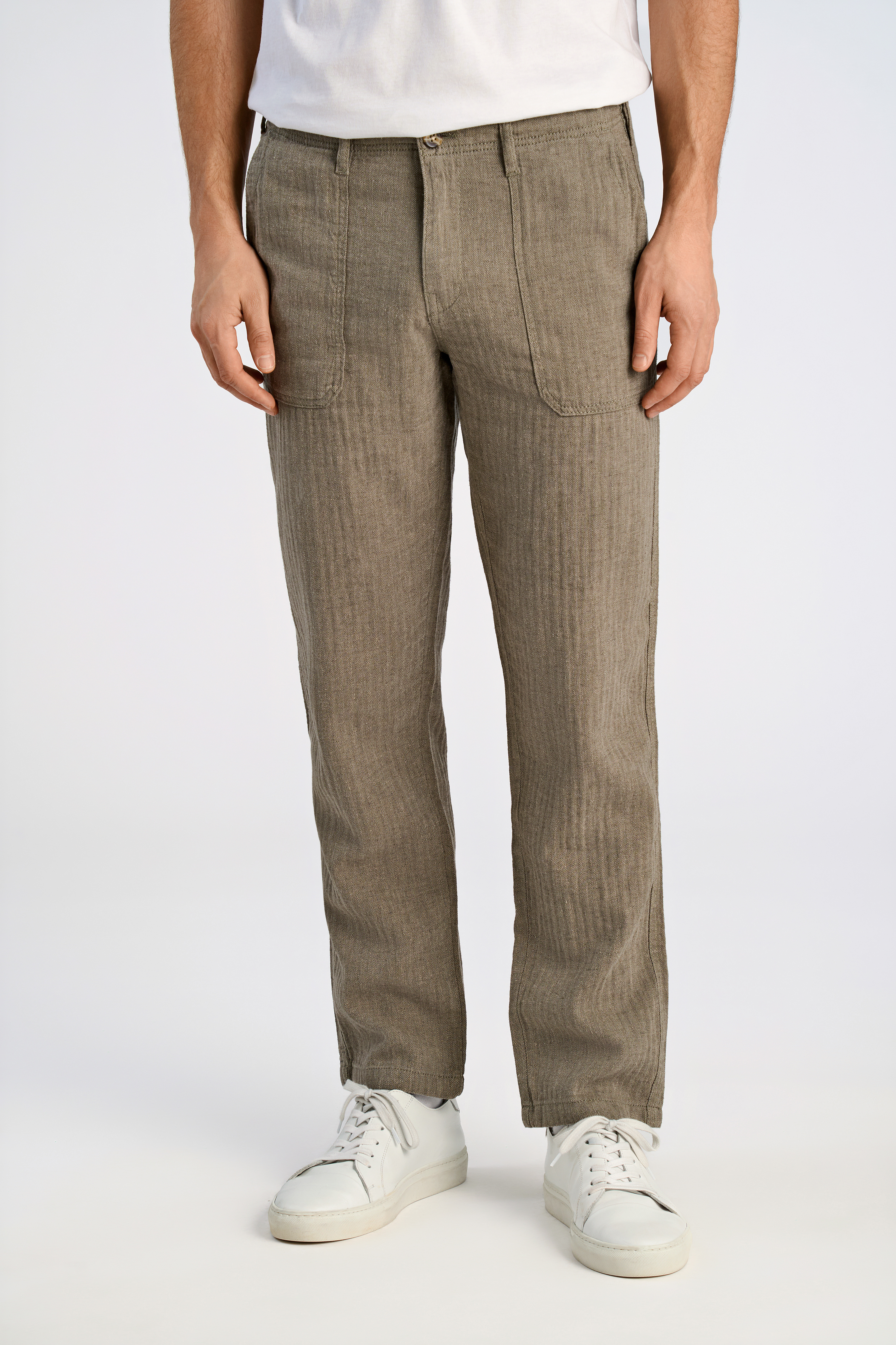 Linen Blend Herringbone Bukser, Army, M