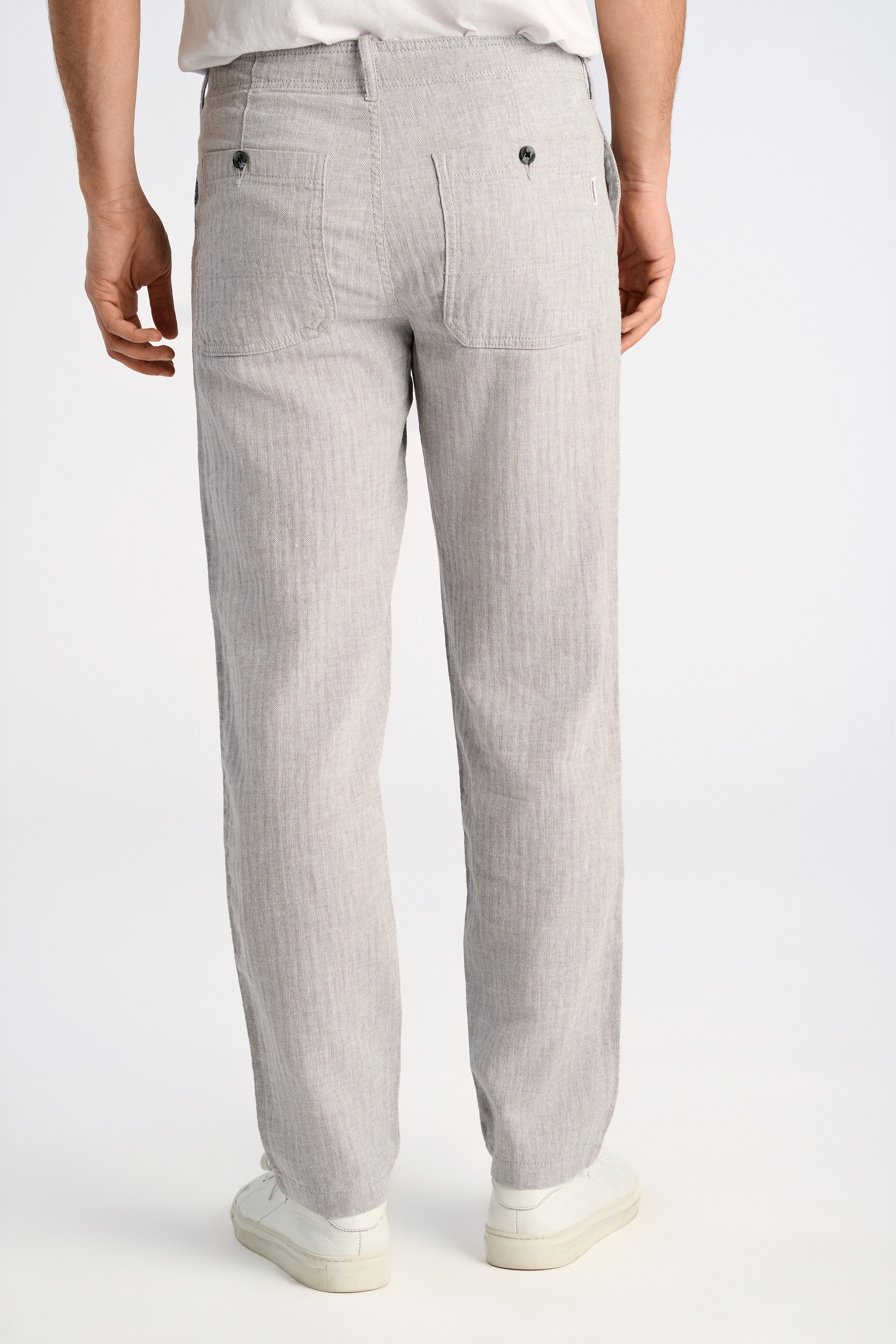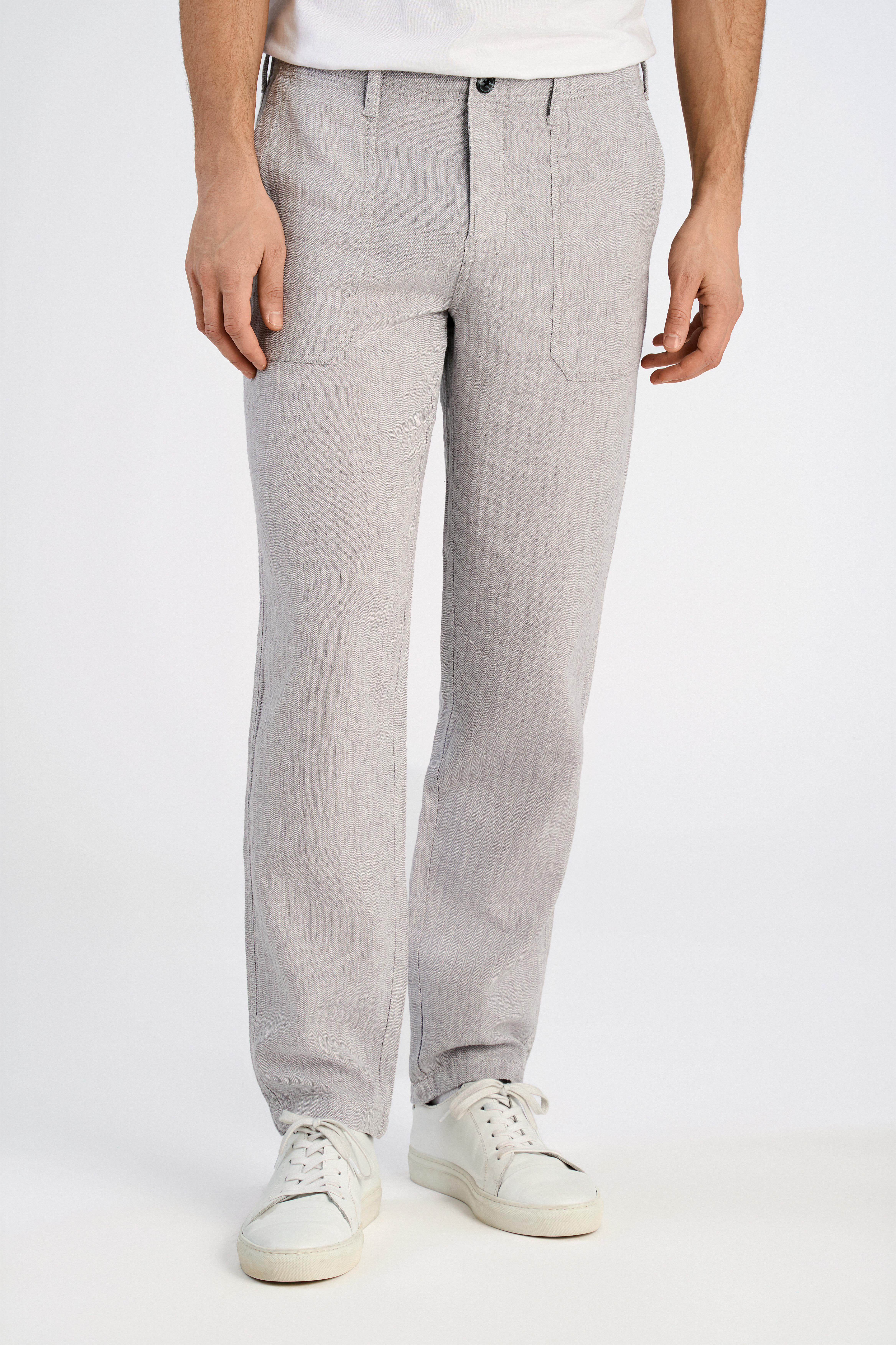 Linen Blend Herringbone Bukser, Grey, M
