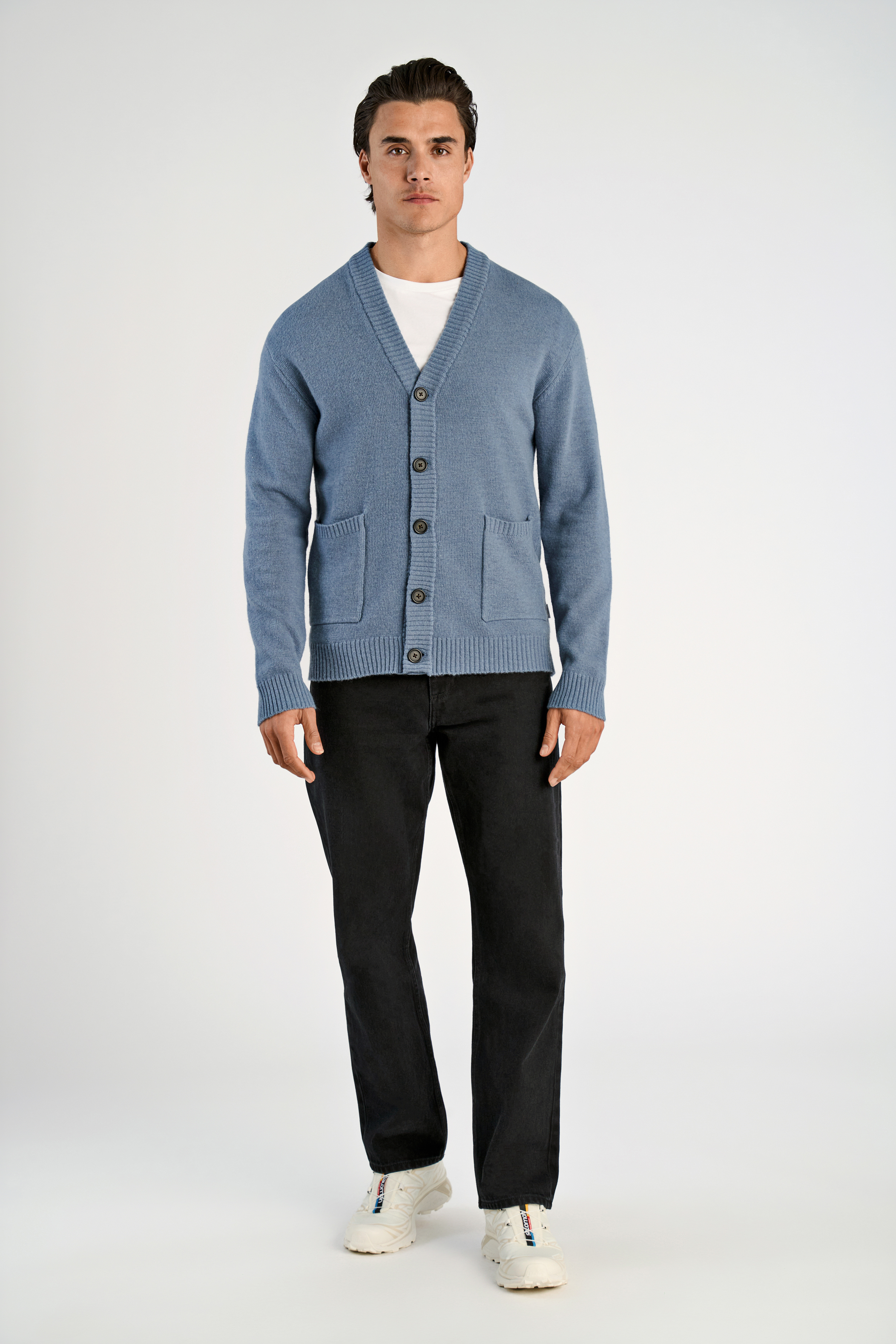 Lambswool Button Cardigan, Blue Ice Mel, XXL