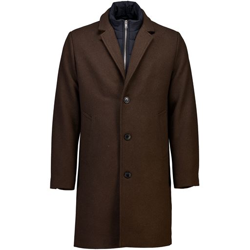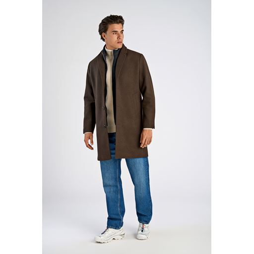 Detachable Collar Lapel Frakke, Dk Brown Mel, M