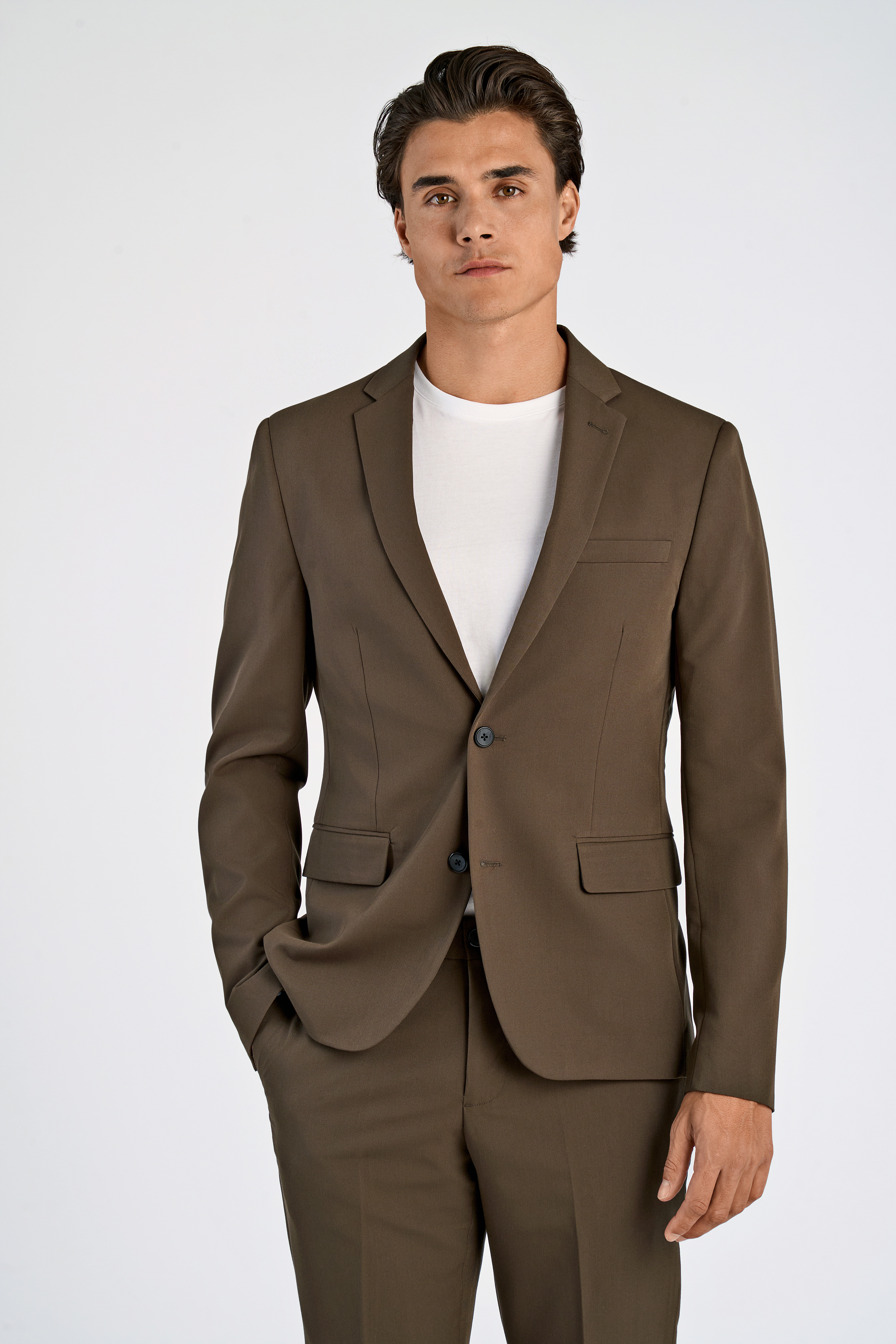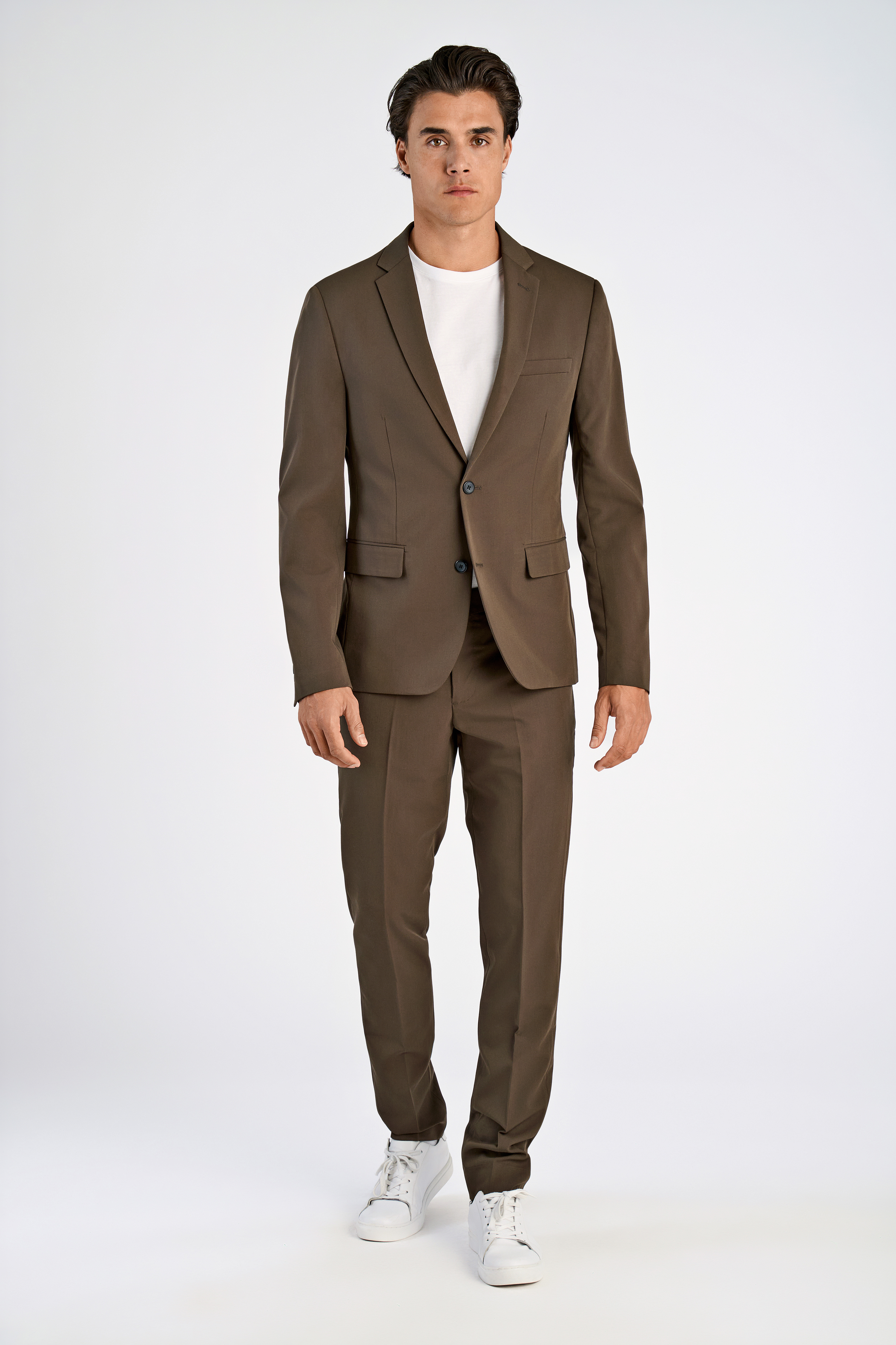 Fine Twill Stretch Jakkesæt, Deep Brown, 58
