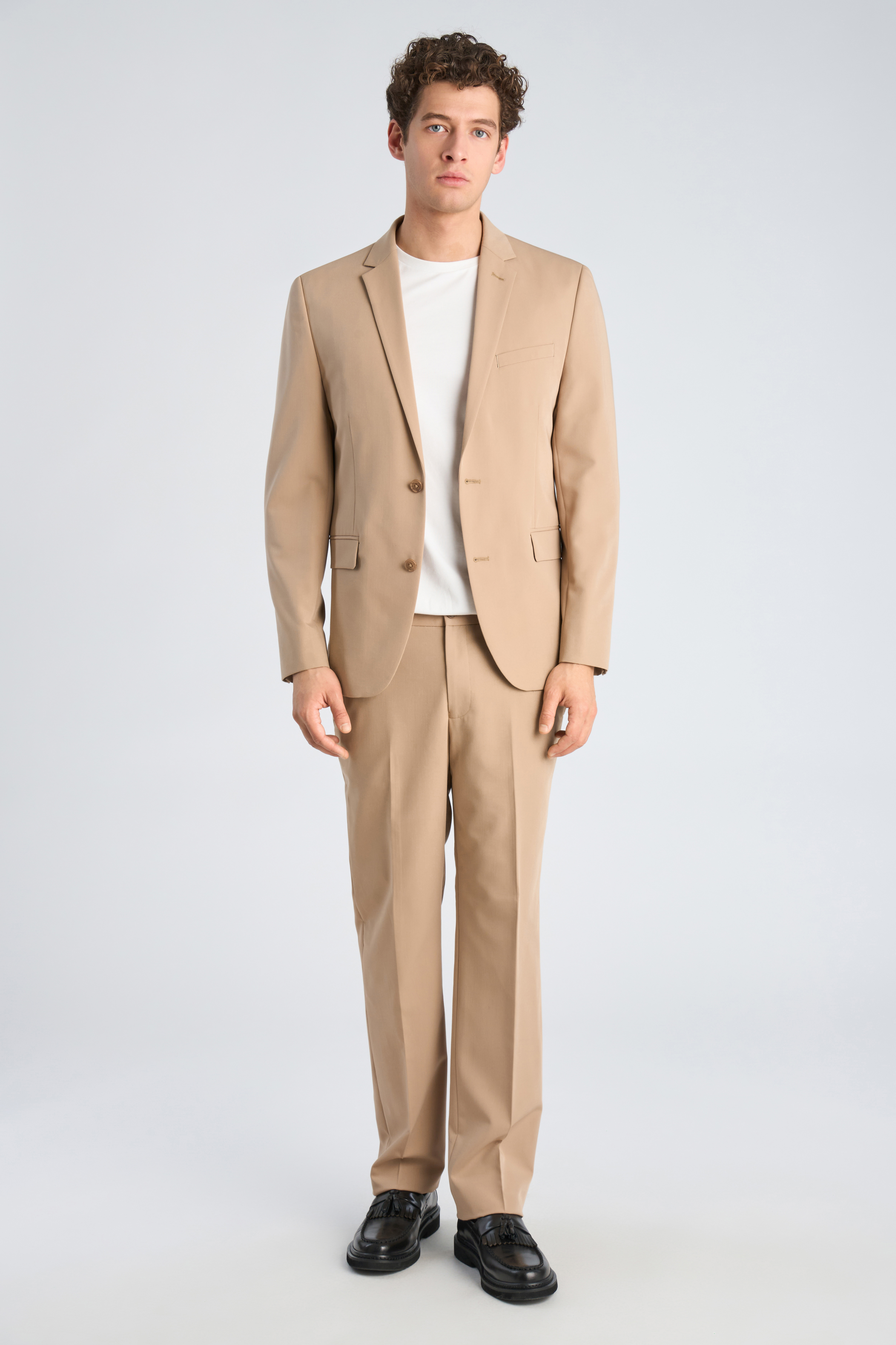 Fine Twill Stretch Jakkesæt, Sand, 48