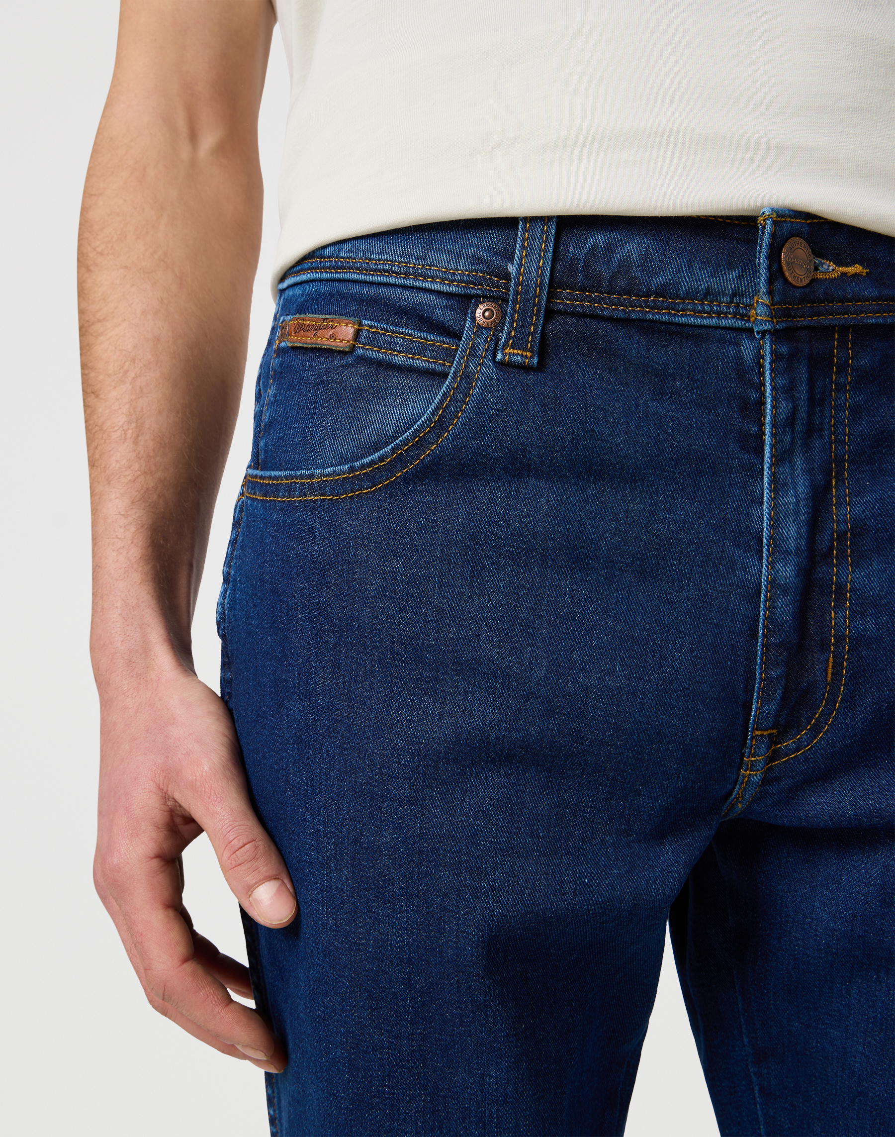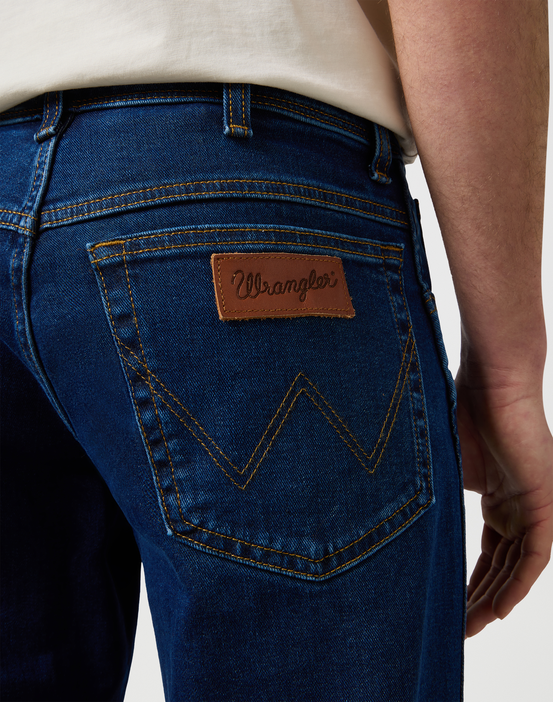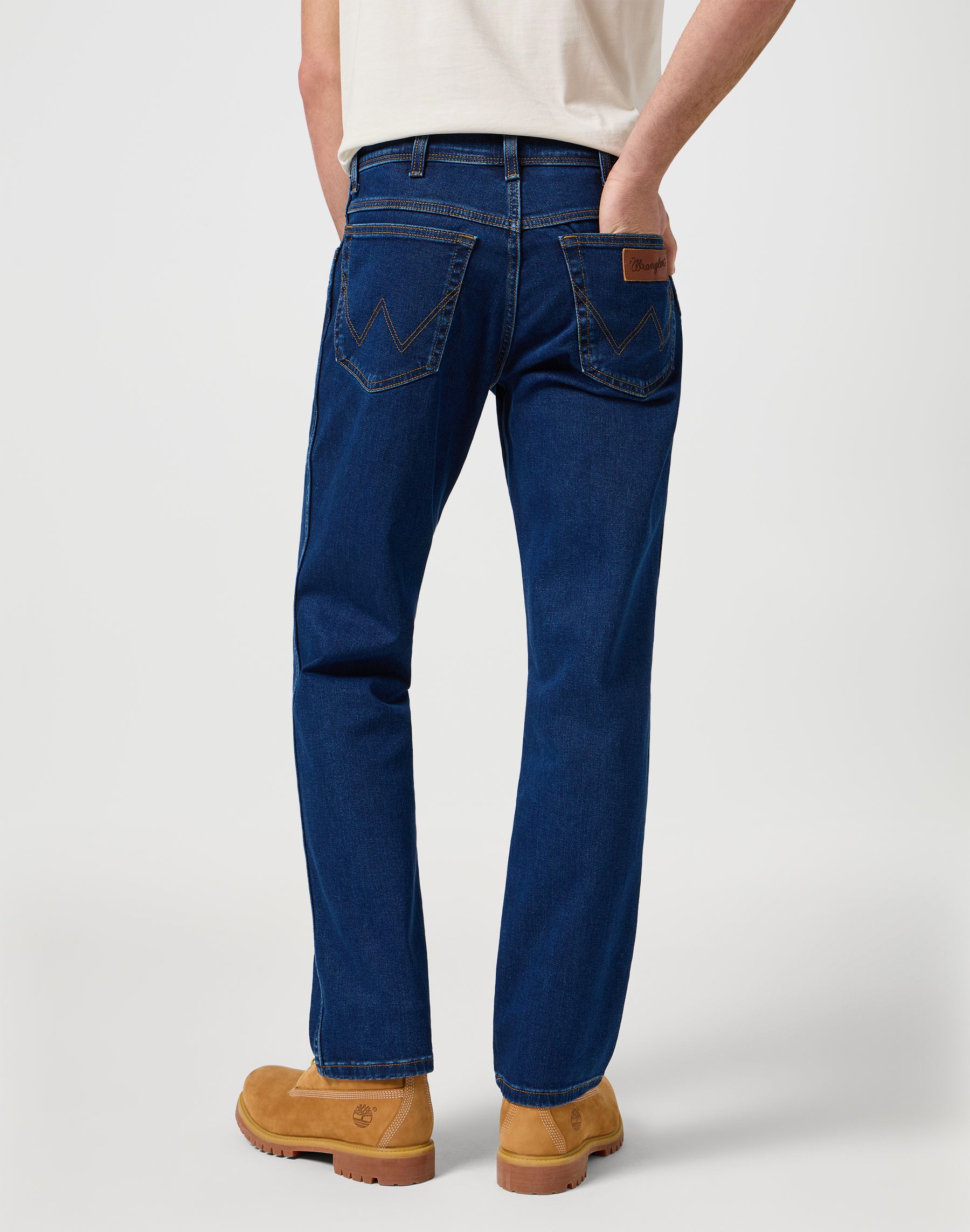 - Wrangler læder logo på baglommen