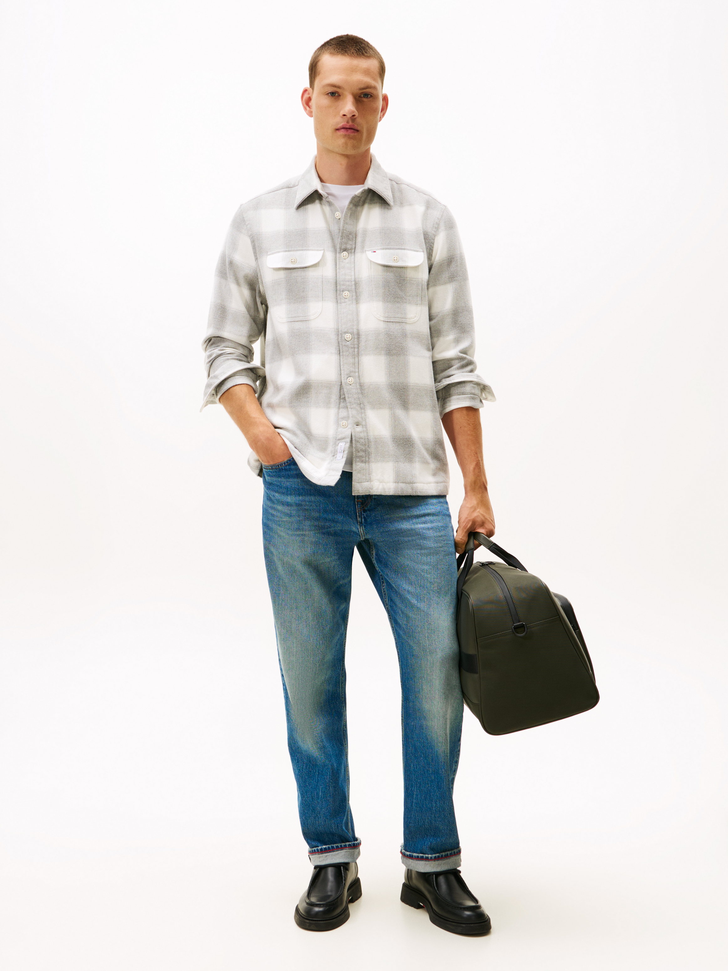 Praktiske brystlommer med flap og knap er både funktionelle og stilfulde, samtidig med at de giver mulighed for nem opbevaring af små genstande. Et diskret flagbroderi pryder lommen og tilføjer et ikonisk element, der hylder brandets arv. Overshirten er fremstillet af børstet kraftig bomuldsflanel, som giver en behagelig og varm fornemmelse – ideel til de kølige måneder. Denne overshirt fra Tommy Hilfiger er den perfekte tilføjelse til garderoben for dem, der ønsker at kombinere komfort og stil.