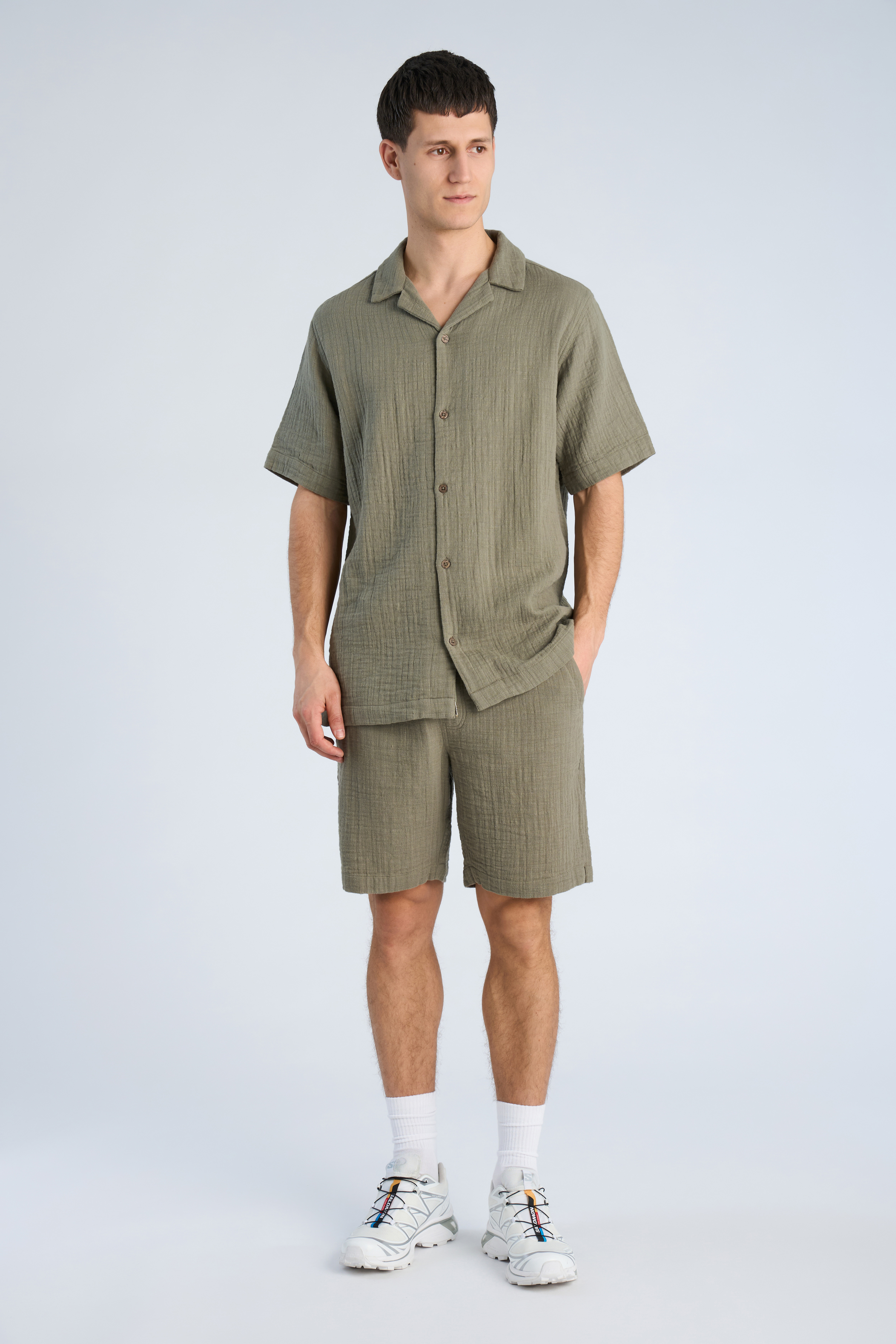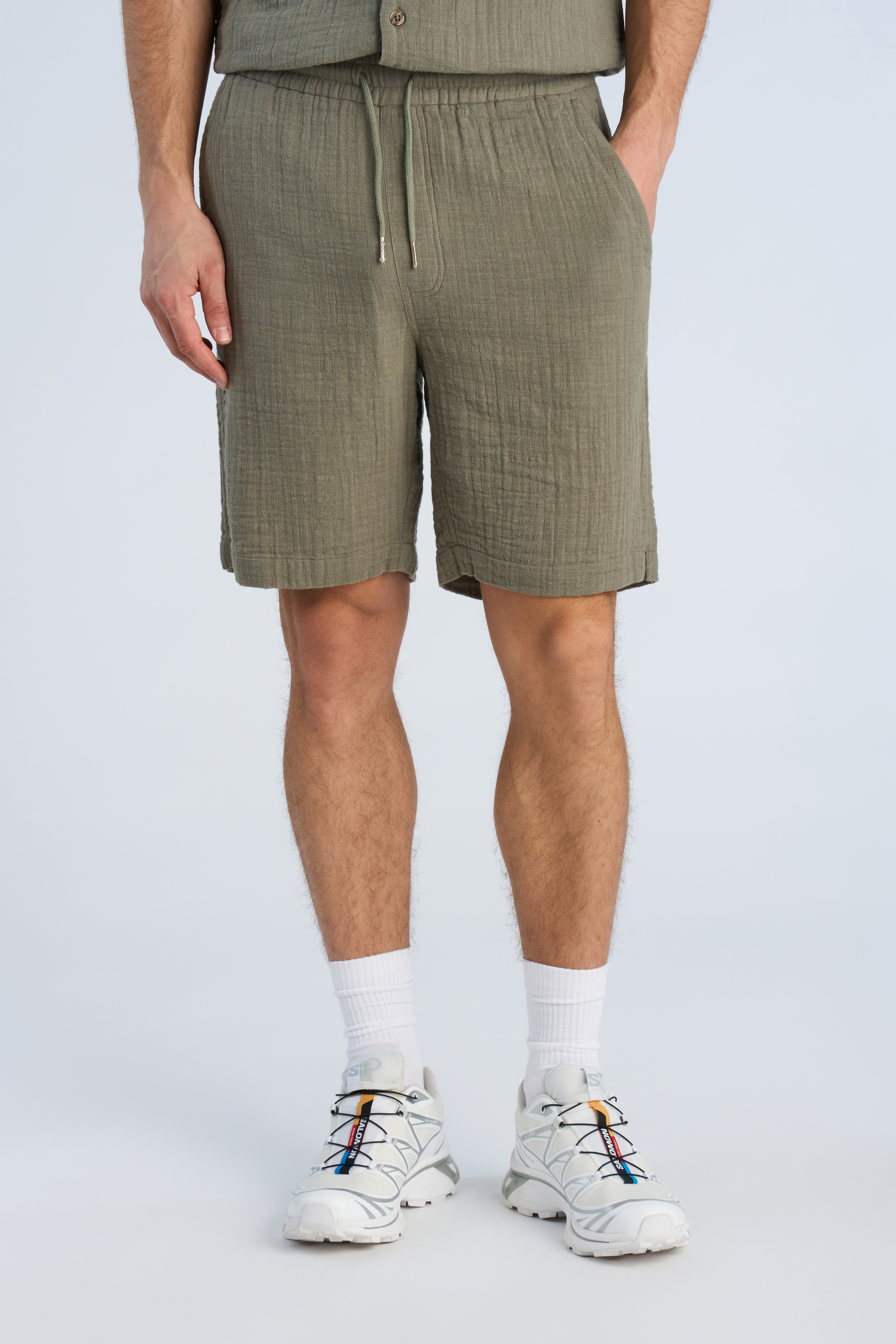 Cotton Muslin Shorts, Dk Khaki, XL