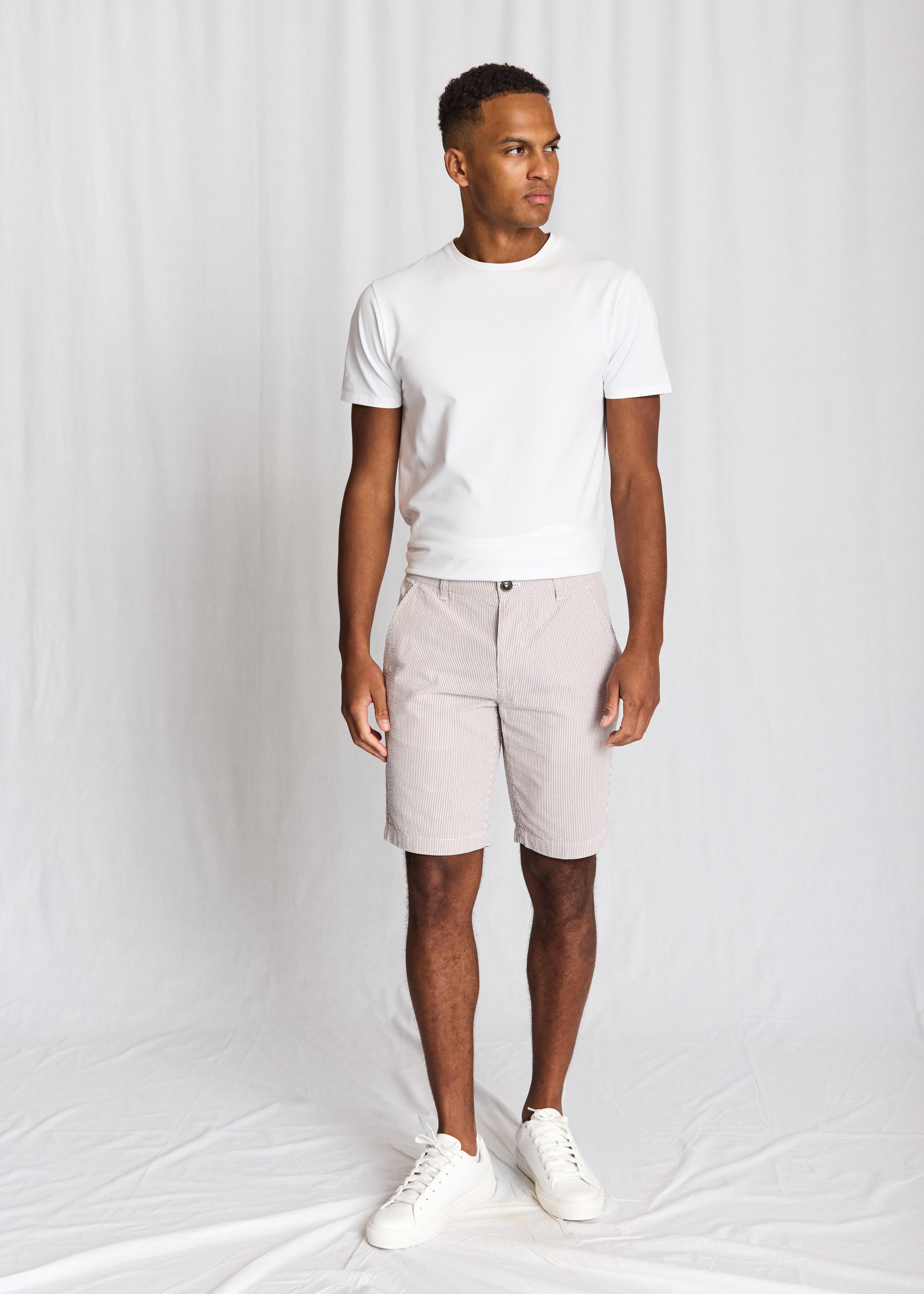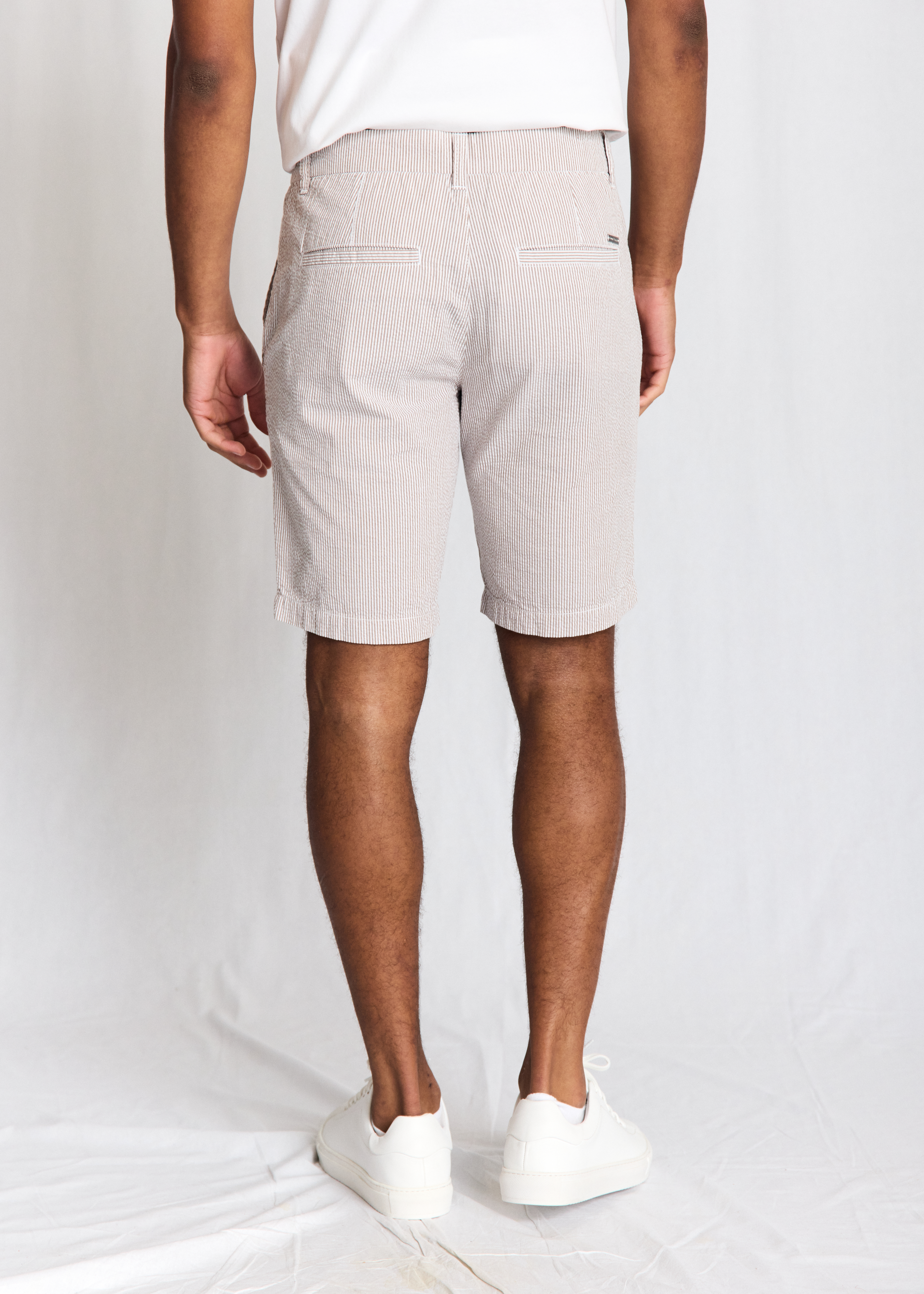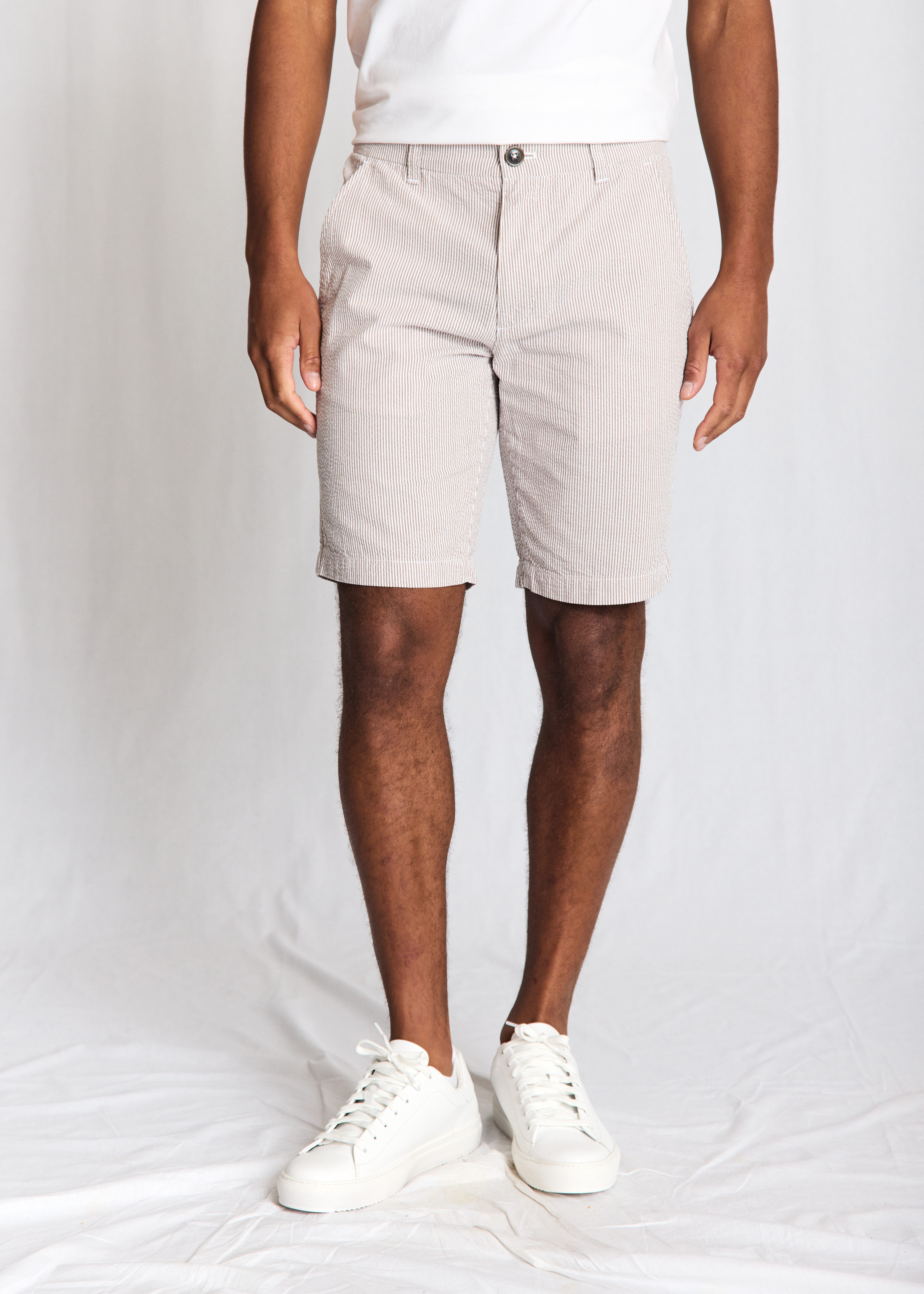 Elio Regular Fit Shorts er skabt i bomuld med en unik seersucker-effekt, der giver stoffet en let og luftig struktur, ideel til varme dage. Det diskrete logomærke i metal over baglommen er en elegant detalje, der understreger mærkets kvalitetsbevidste tilgang. Med en regular fit pasform sikrer disse shorts både komfort og en afslappet stil, der nemt kan tilpasses enhver garderobe. Gør dig klar til sommeren med et par shorts, der kombinerer funktionalitet og stil til perfektion.