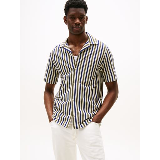 1985 Knitted Stripe Skjorte, Battle Green/Stripe, L