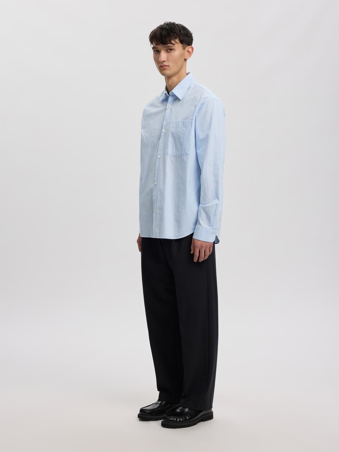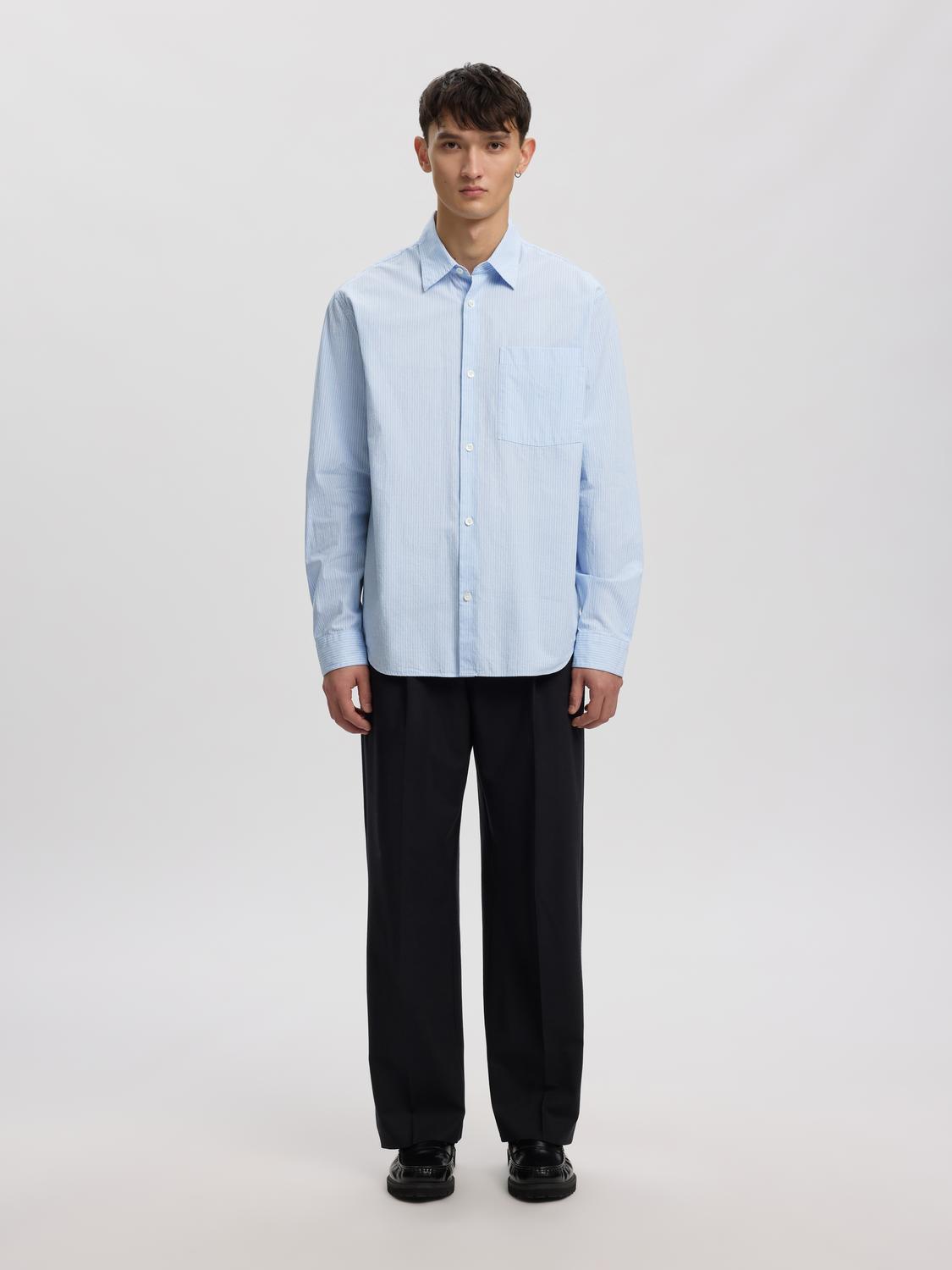 Oplev komfort og stil med Aslund Seersucker Mix skjorten fra Annarr. Denne skjorte er designet med lange ærmer, hvilket gør den ideel til både kølige og varme dage. Den praktiske brystlomme tilføjer et funktionelt element til designet, hvor du let kan opbevare småting. Skjorten har en almindelig krave, der giver et klassisk og tidløst udtryk, hvilket gør den passende til både formelle og afslappede anledninger.