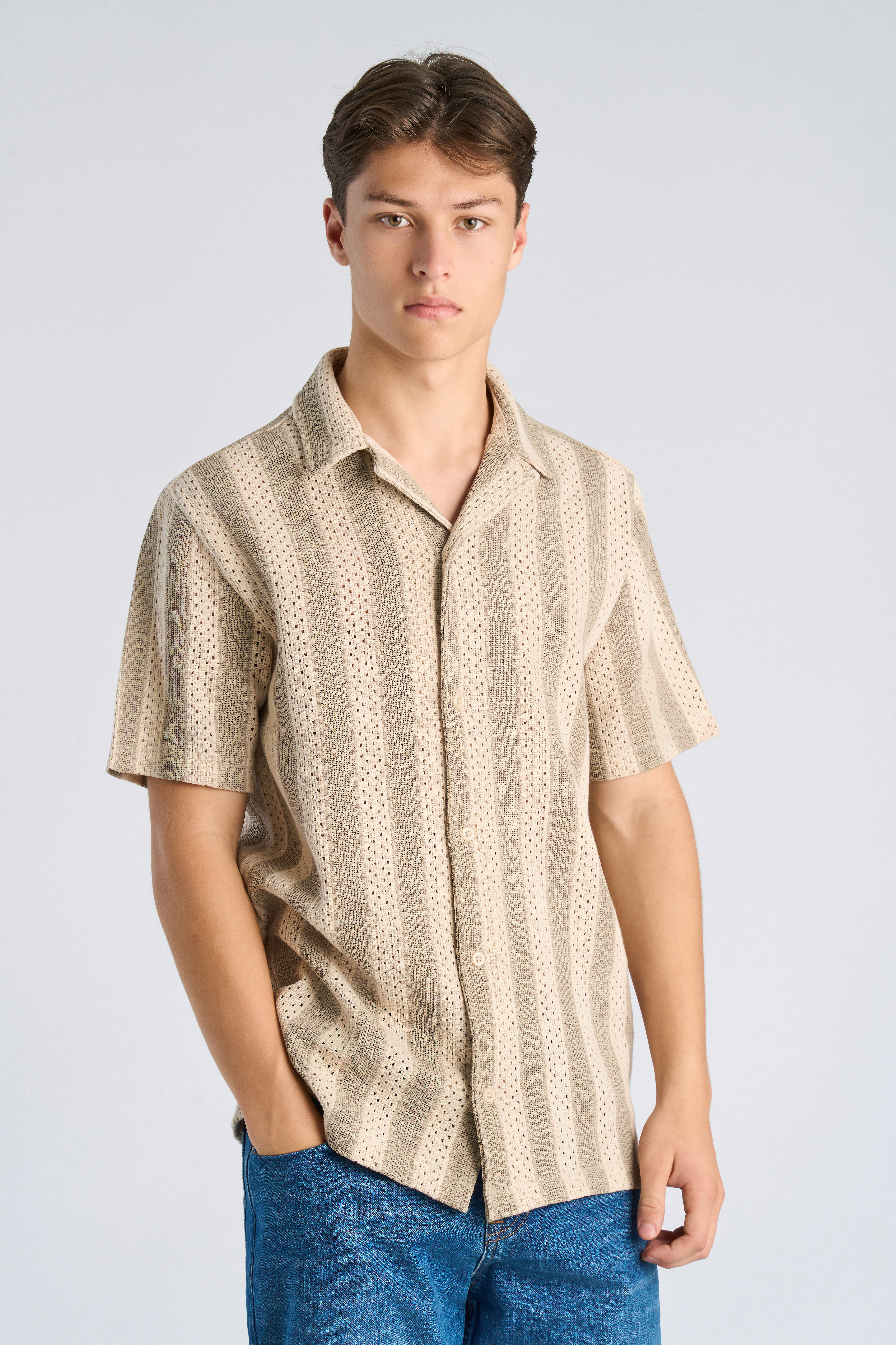 Bold Striped Resort S/S Skjorte, Stone, XXL