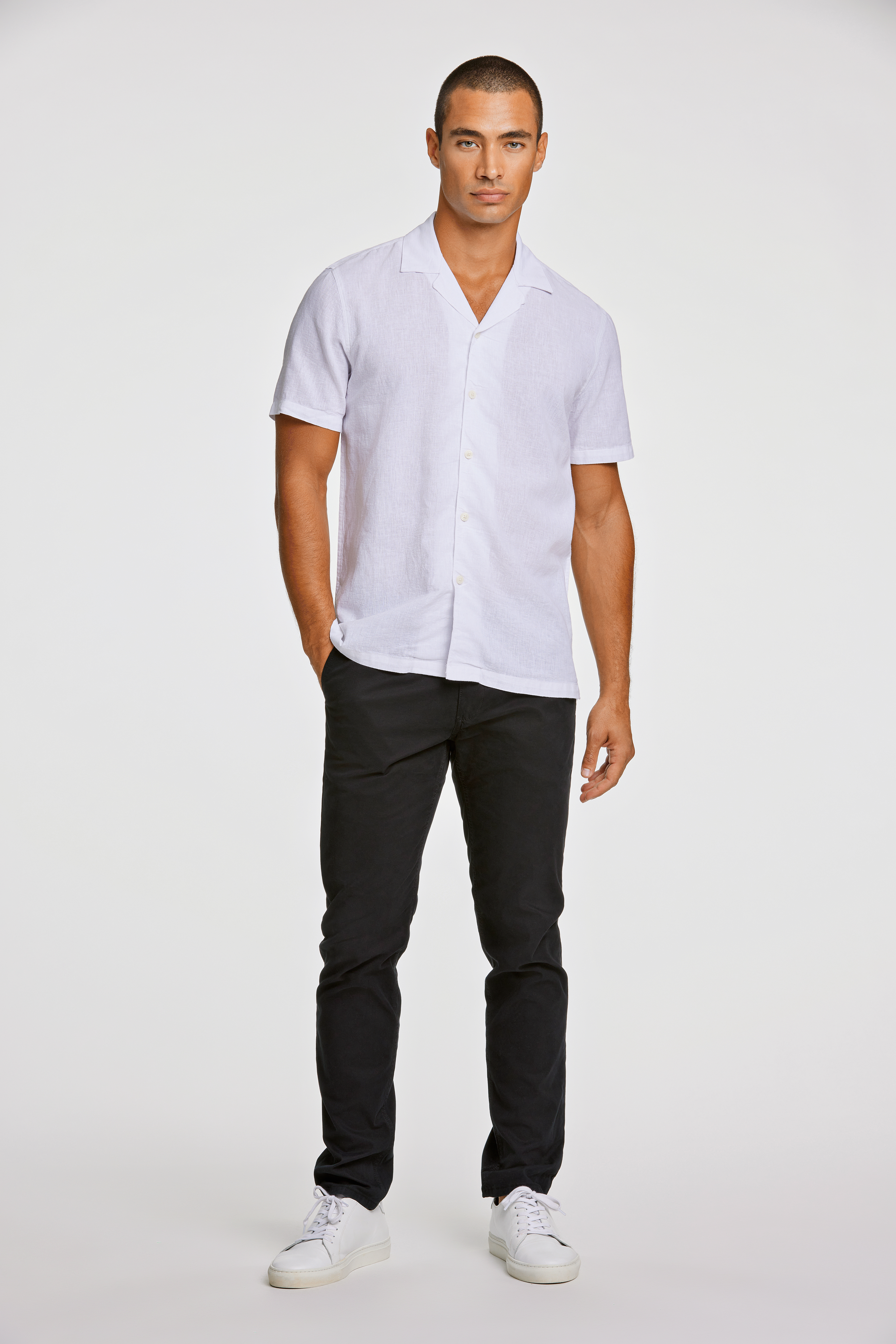 Casual Linen Blend Resort Skjorte, White, XXL