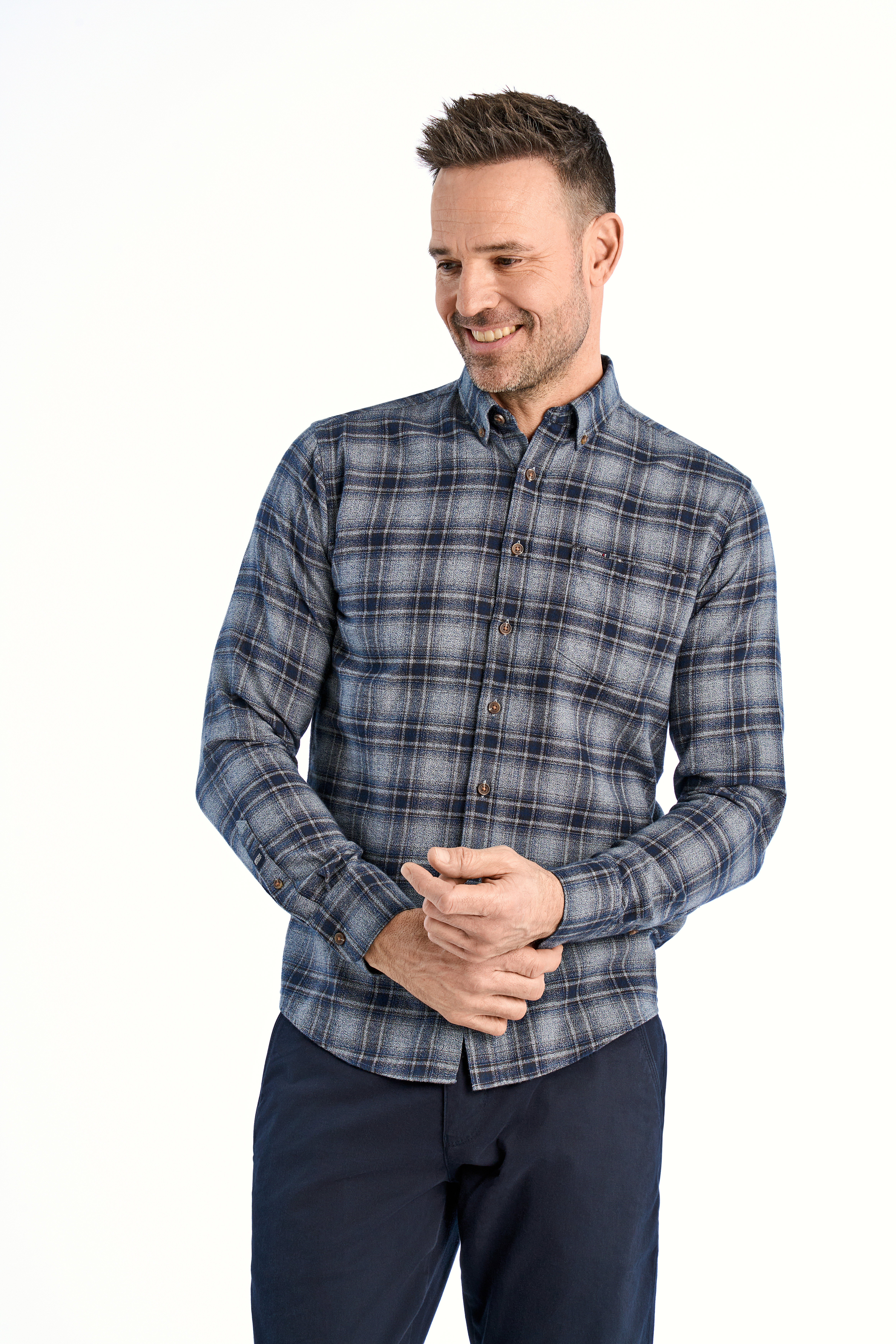 Checked Moulinex Skjorte, Navy, 4XL
