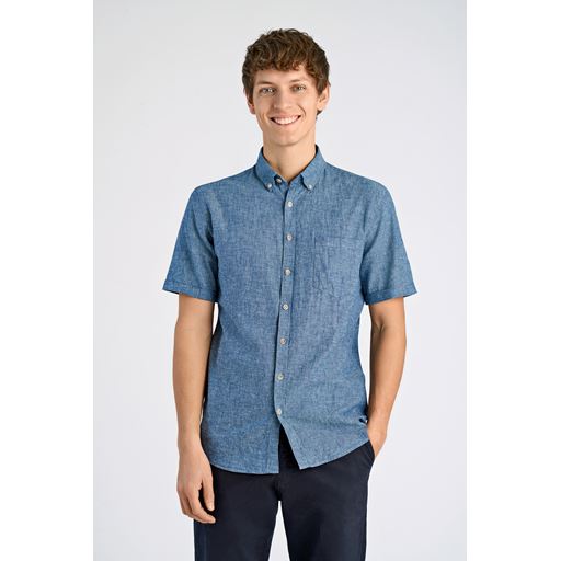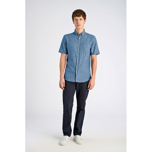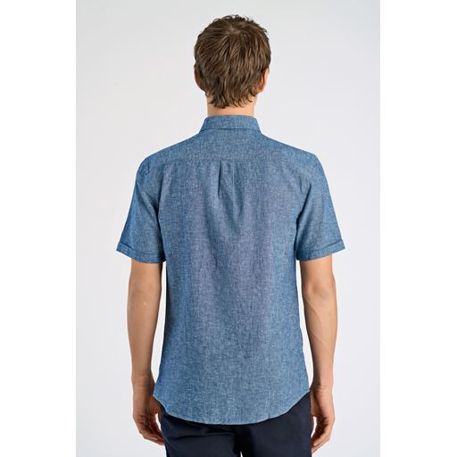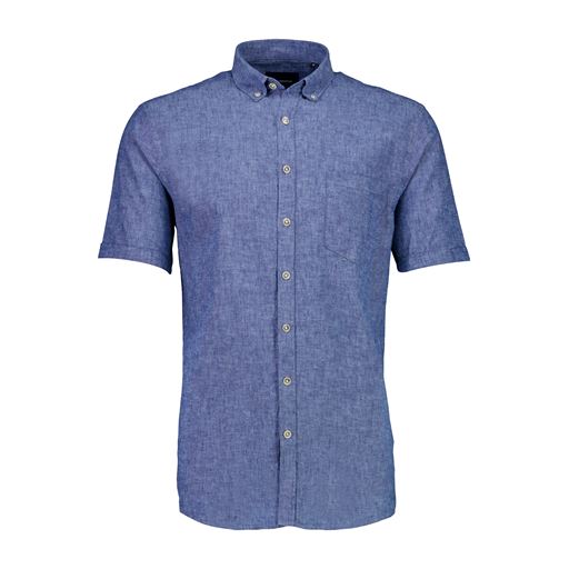 Cotton/Linen Kortærmet Skjorte, Navy, XL
