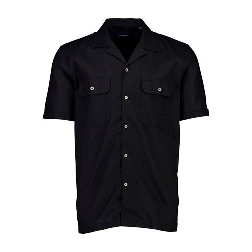 Cotton/Linen Resort Skjorte, Black, 4XL