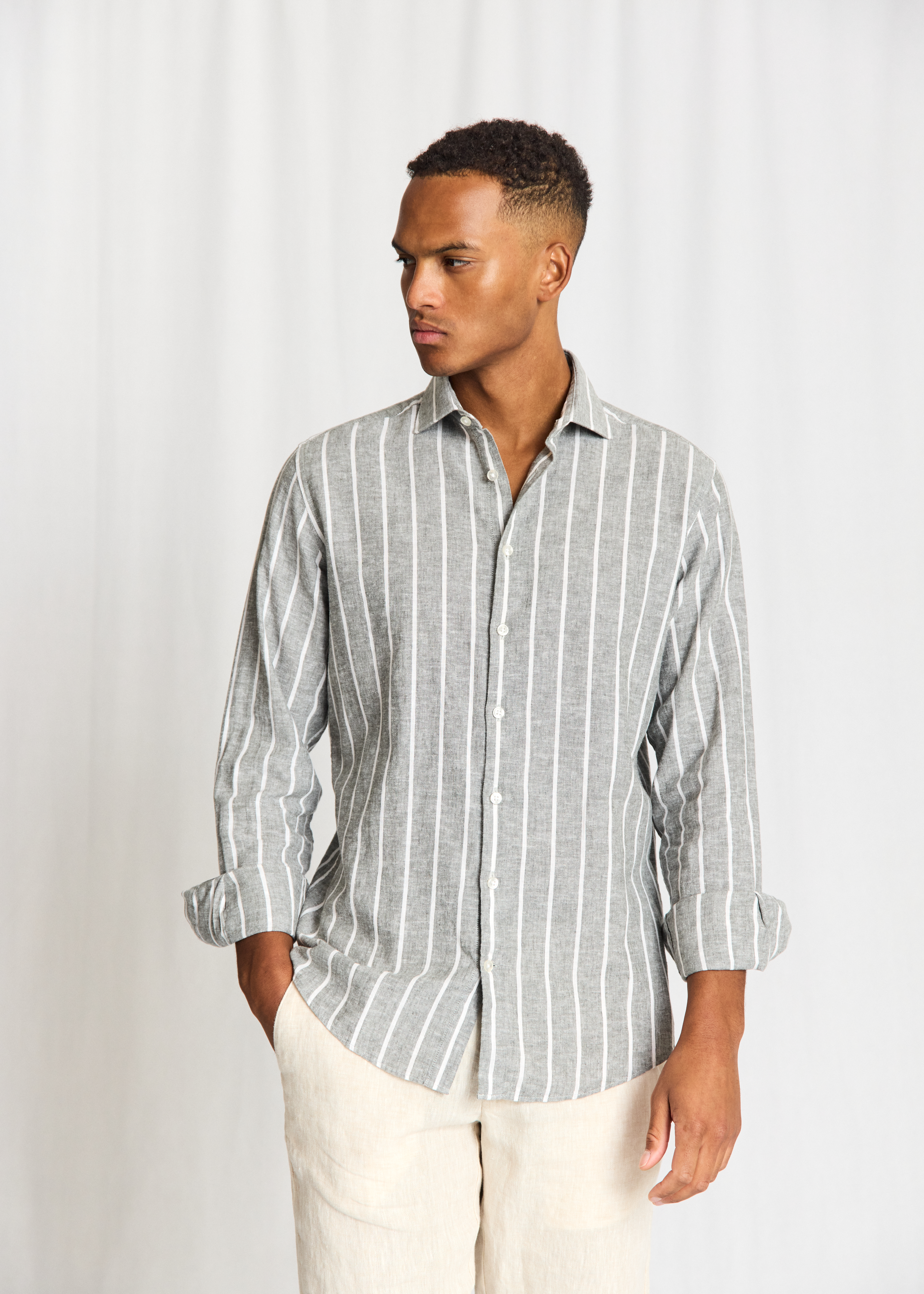 Freitas Casual Modern Fit Skjorte fra Bruun & Stengade er et elegant og alsidigt valg til den moderne mands garderobe. Denne stilfulde skjorte er designet med en blanding af hør og bomuld, hvilket giver en behagelig og let følelse, der er ideel til både hverdagsbrug og mere formelle lejligheder. Kombinationen af hør og bomuld sikrer åndbarhed og komfort, hvilket gør skjorten perfekt til brug hele dagen.