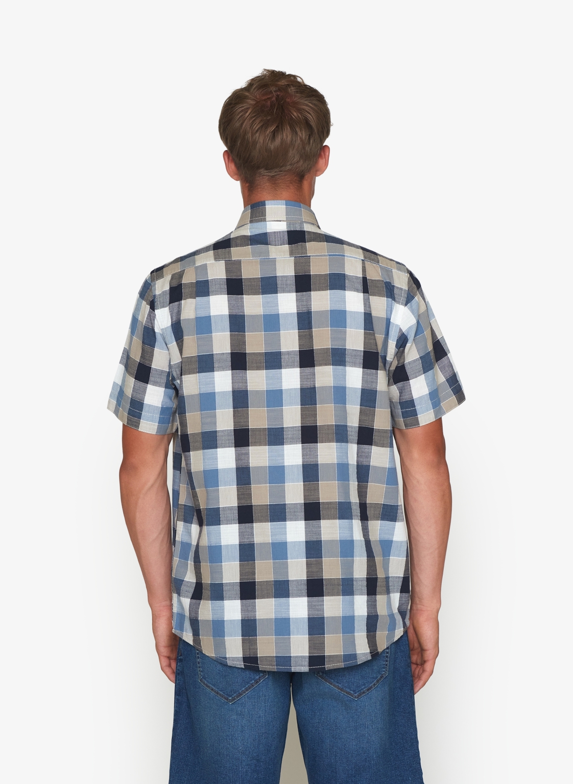 Glen Slub Hunter Check Skjorte, Deep Marine, S