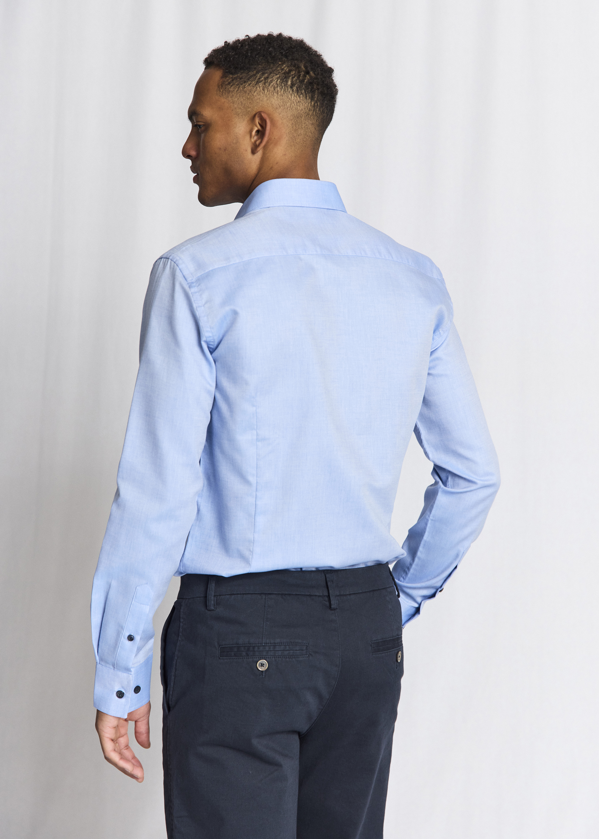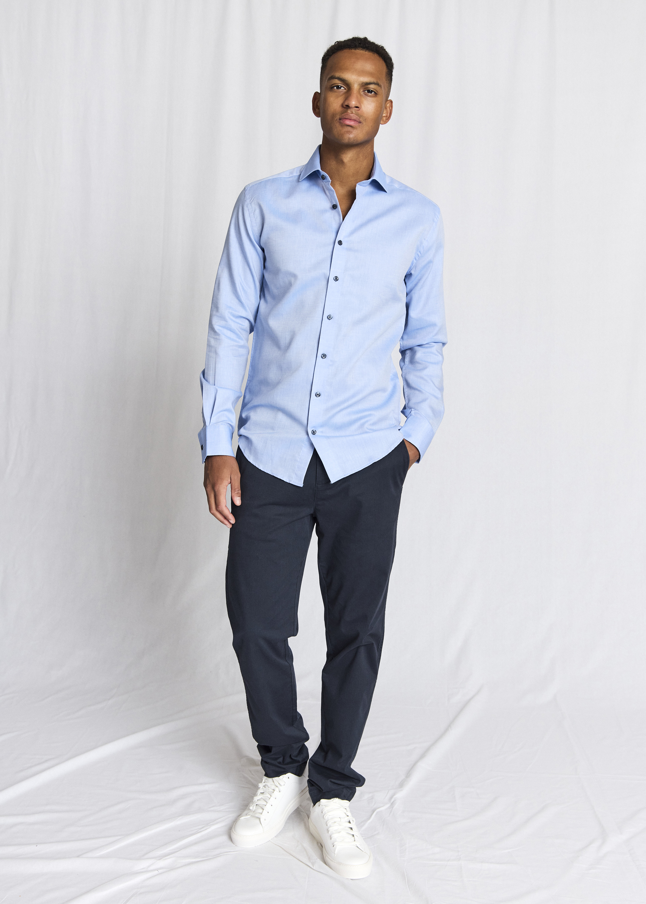 Skjorten har en slim fit pasform, som sikrer en skarp silhuet, der fremhæver kroppens konturer på en flatterende måde. Materialet er 100% bomuld i en unik dobby-vævning, der giver stoffet en struktureret overflade og en god holdbarhed. Denne kombination af kvalitet og design gør skjorten til et alsidigt valg, der både kan bruges til kontoret og i mere afslappede sammenhænge. Med Hendrik Slim Fit Skjorte fra Bruun & Stengade investerer du i en tidløs klassiker, der med sit elegante udtryk og høje komfort kan bruges igen og igen.
