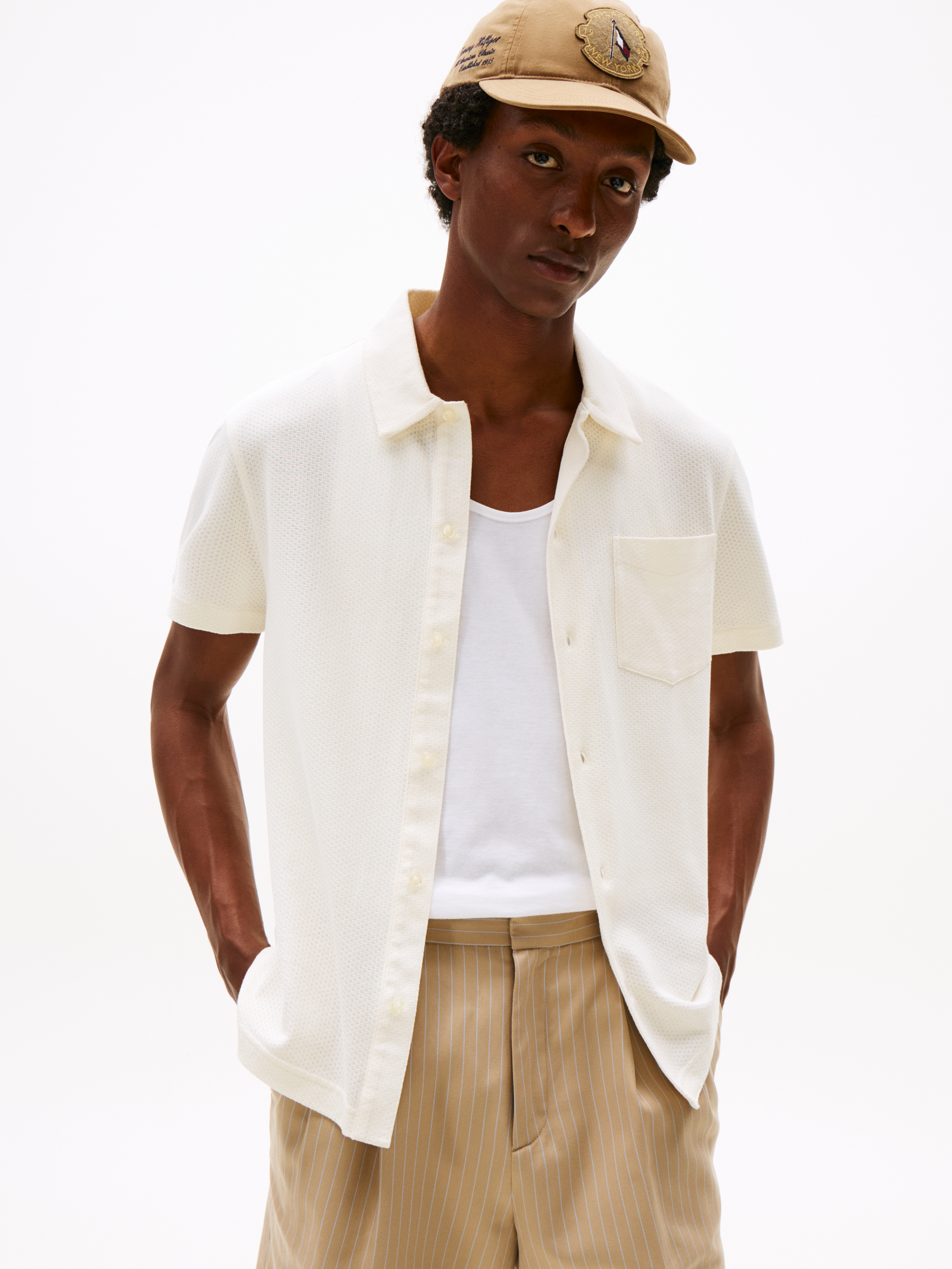 Open Knit Full Placket Skjorte, Ivory Petal, S
