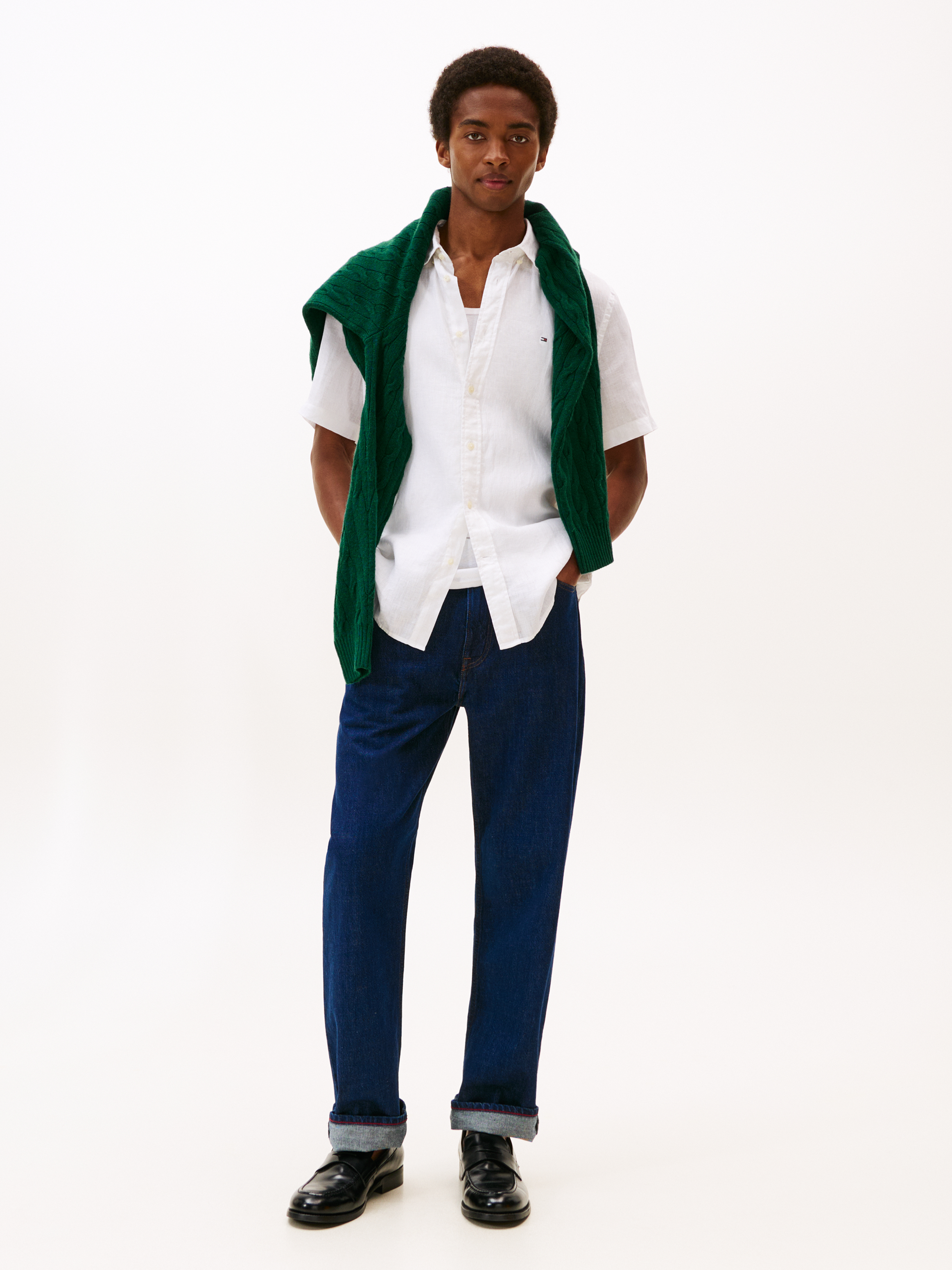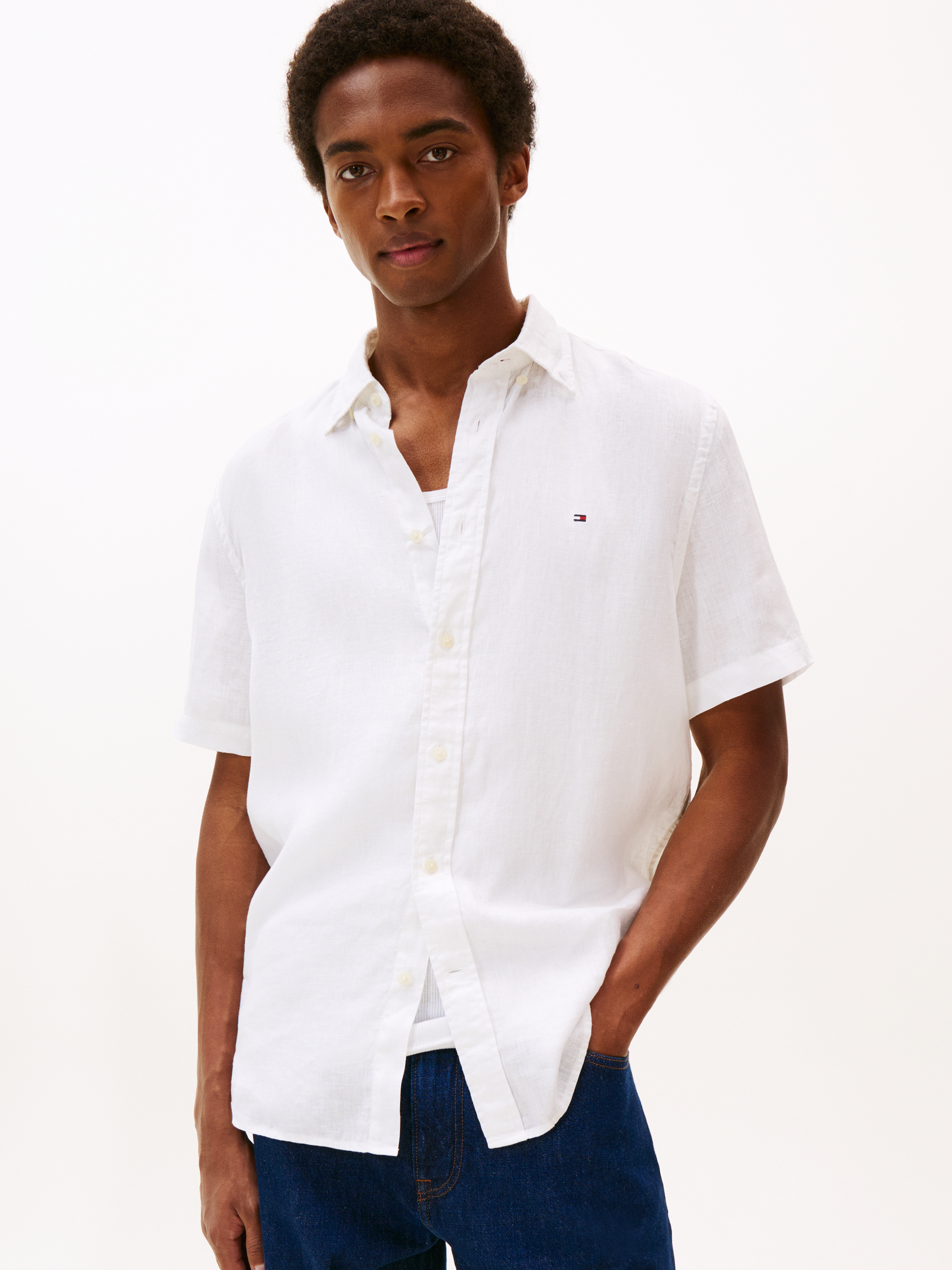 De korte ærmer og den button-down krave tilføjer en afslappet, men sofistikeret stil, der gør skjorten velegnet til både hverdag og mere formelle lejligheder. På venstre bryst finder du det ikoniske flagbroderi, som subtilt understreger Tommy Hilfigers kvalitetsmærke. Skjorten er designet i en regular fit, der sikrer en behagelig pasform uden at være for stram eller løs. Denne skjorte er et must-have for enhver garderobe, der ønsker at kombinere klassisk design med moderne detaljer.