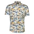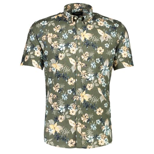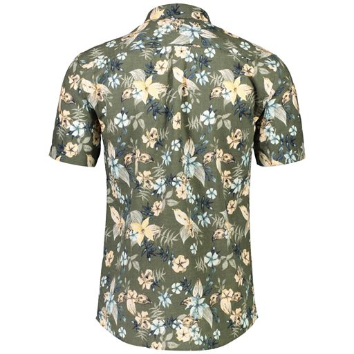Printed Cotton/Linen Skjorte, Khaki, M