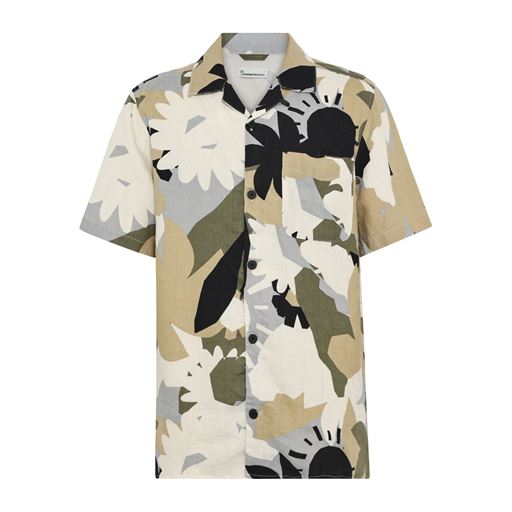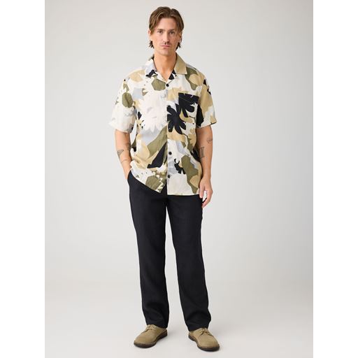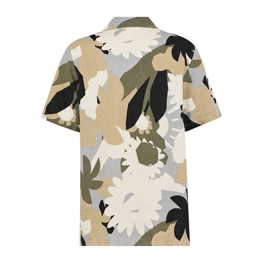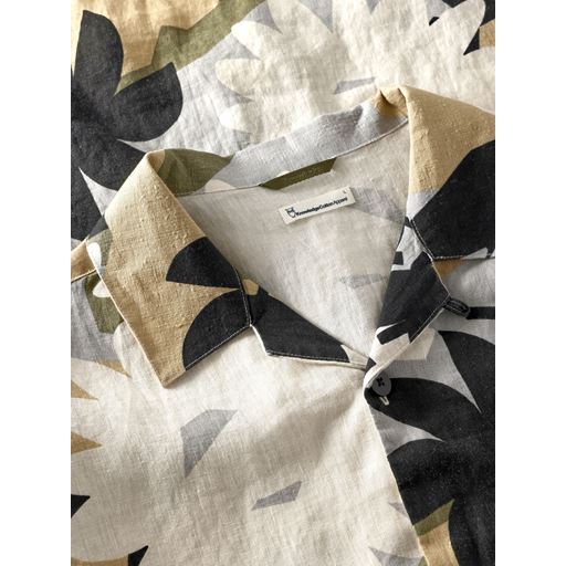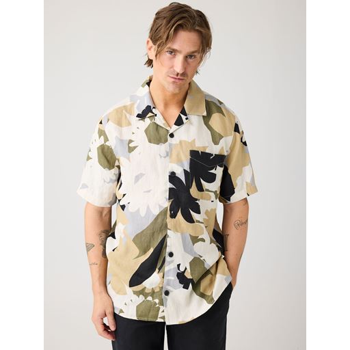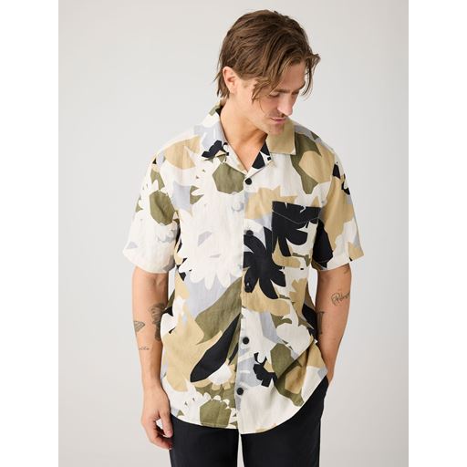 Relaxed Linen Print Short Sleeve Skjorte, Green, XXL