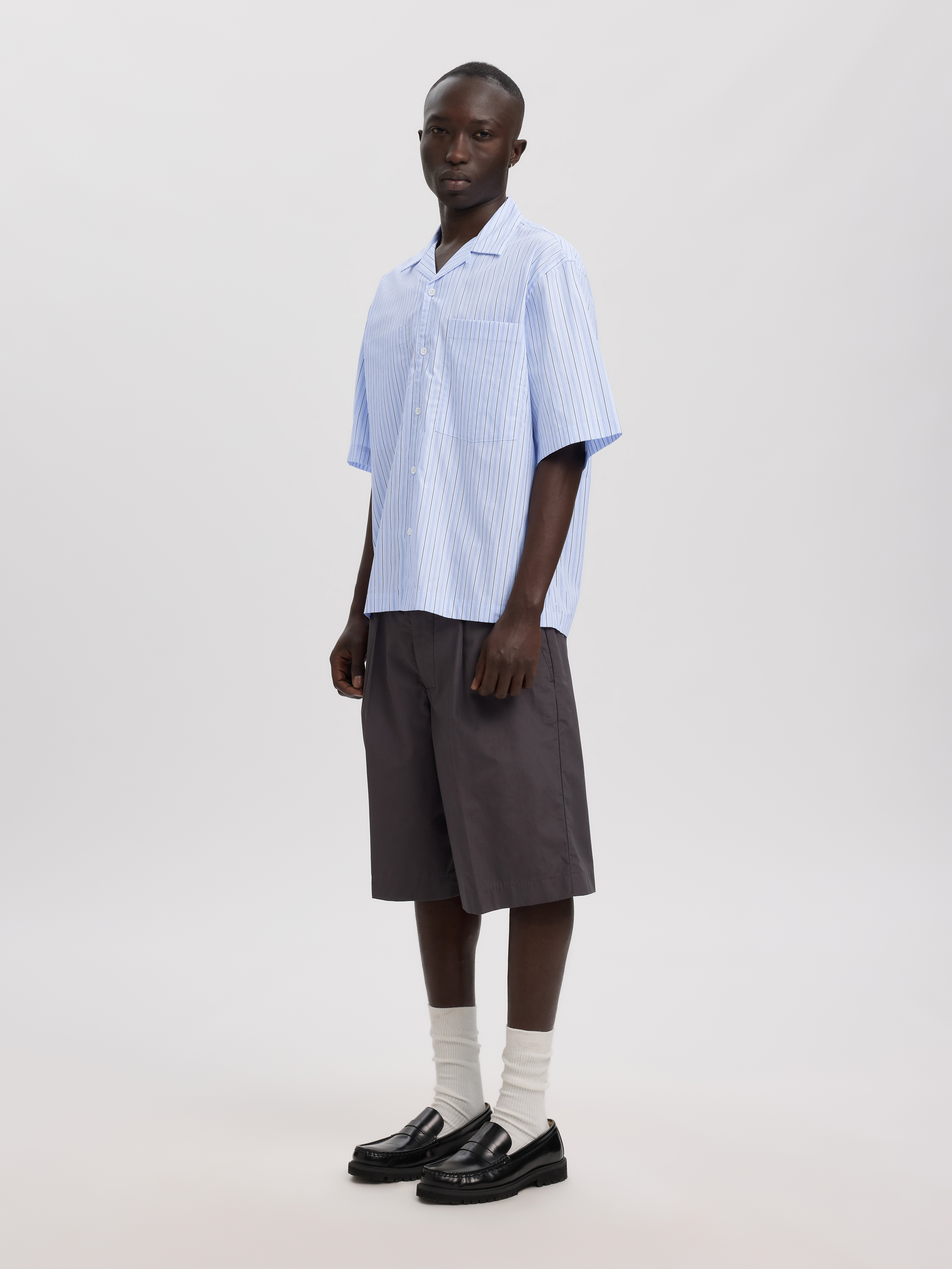 Skjorten er udstyret med en resort-krave, der giver et afslappet og samtidig sofistikeret look, ideelt til sommerlige udflugter eller uformelle arrangementer. En funktionel brystlomme tilføjer både praktisk anvendelighed og stil til skjorten, perfekt til opbevaring af små nødvendigheder. Med sin boxy fit sikrer skjorten en behagelig og rummelig pasform, der tillader bevægelsesfrihed og komfort hele dagen.