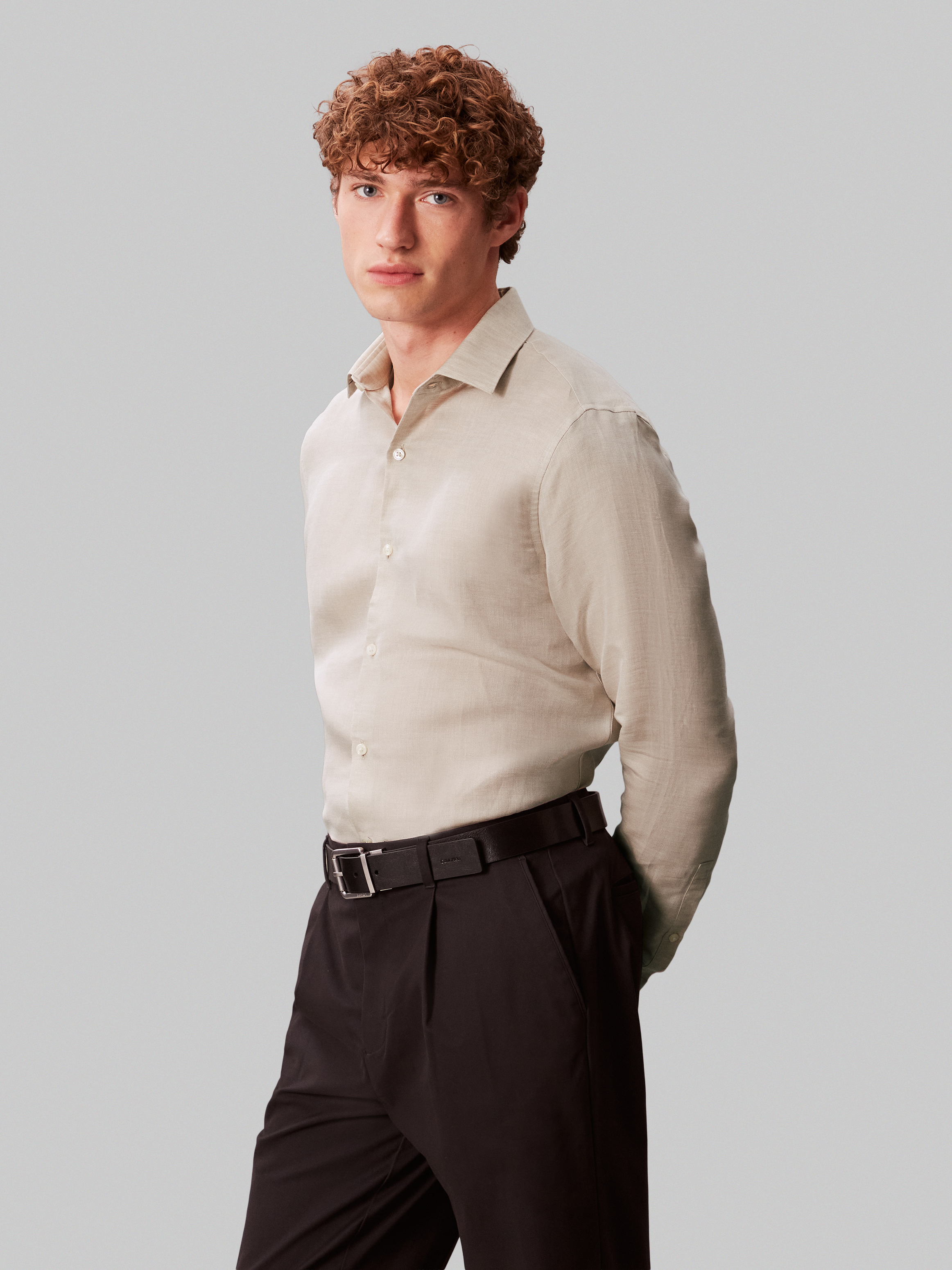 Slim Ref Linen Blend SLD Skjorte, Taupe, 45