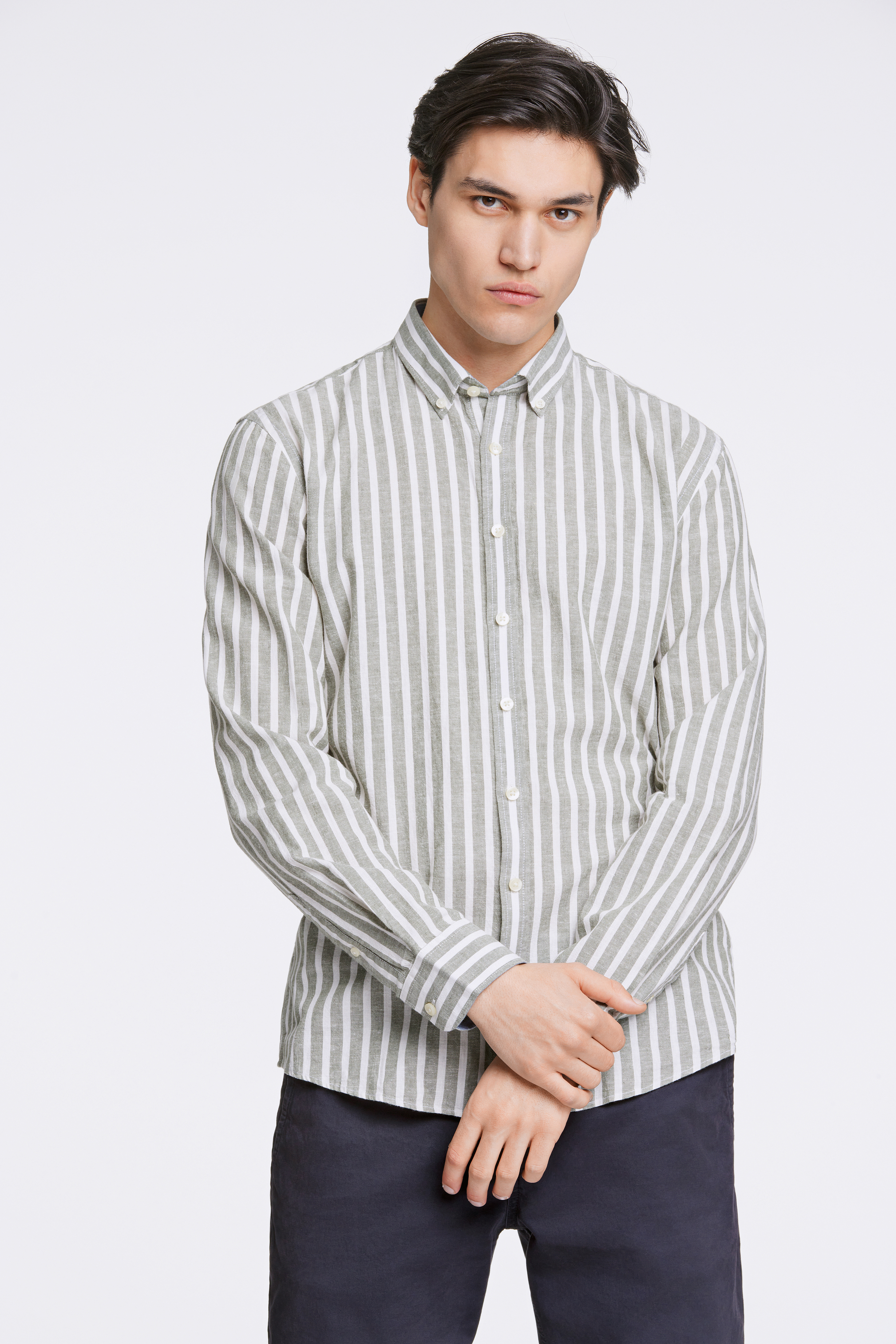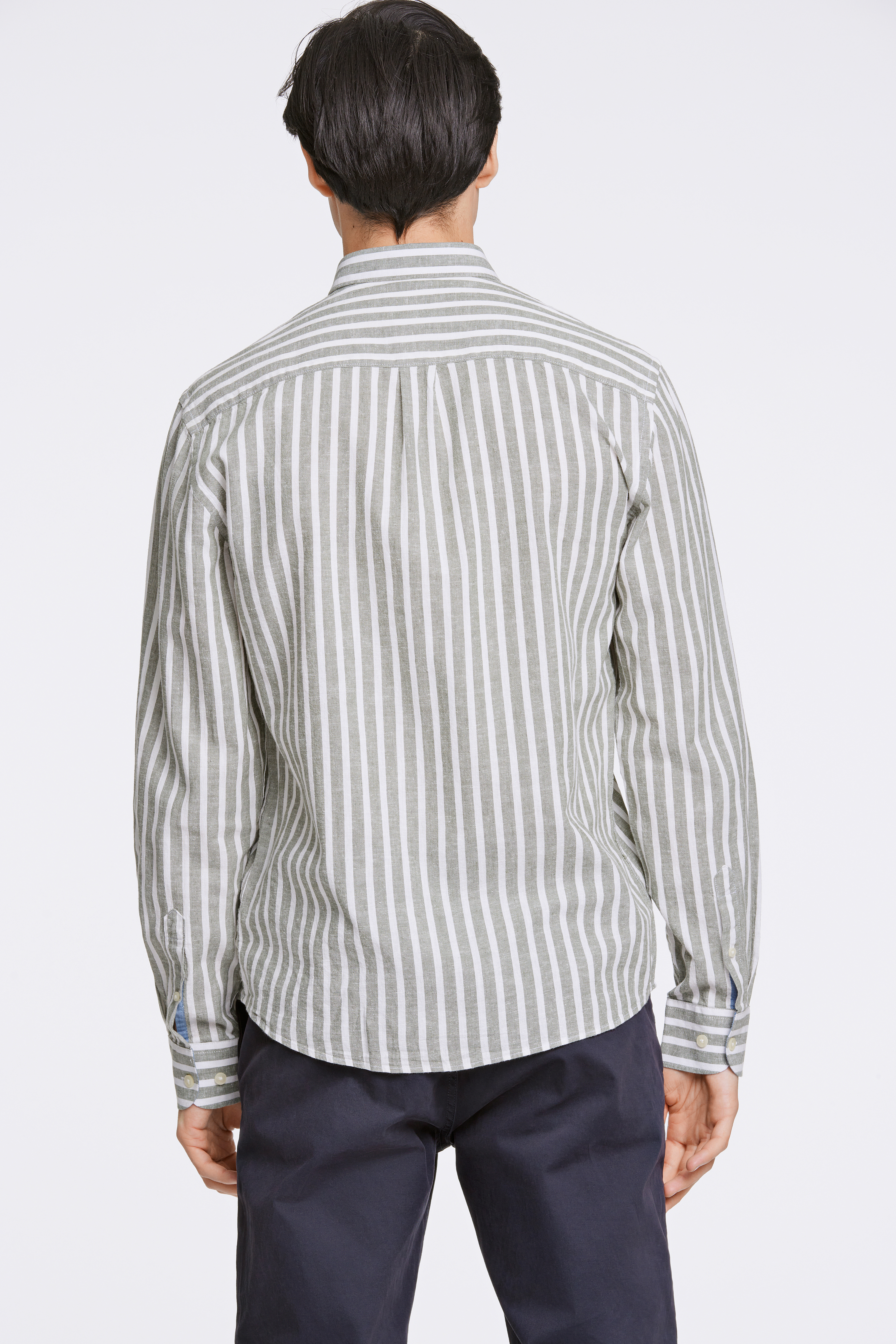Striped Cotton/Linen Relaxed Skjorte, Khaki, XL