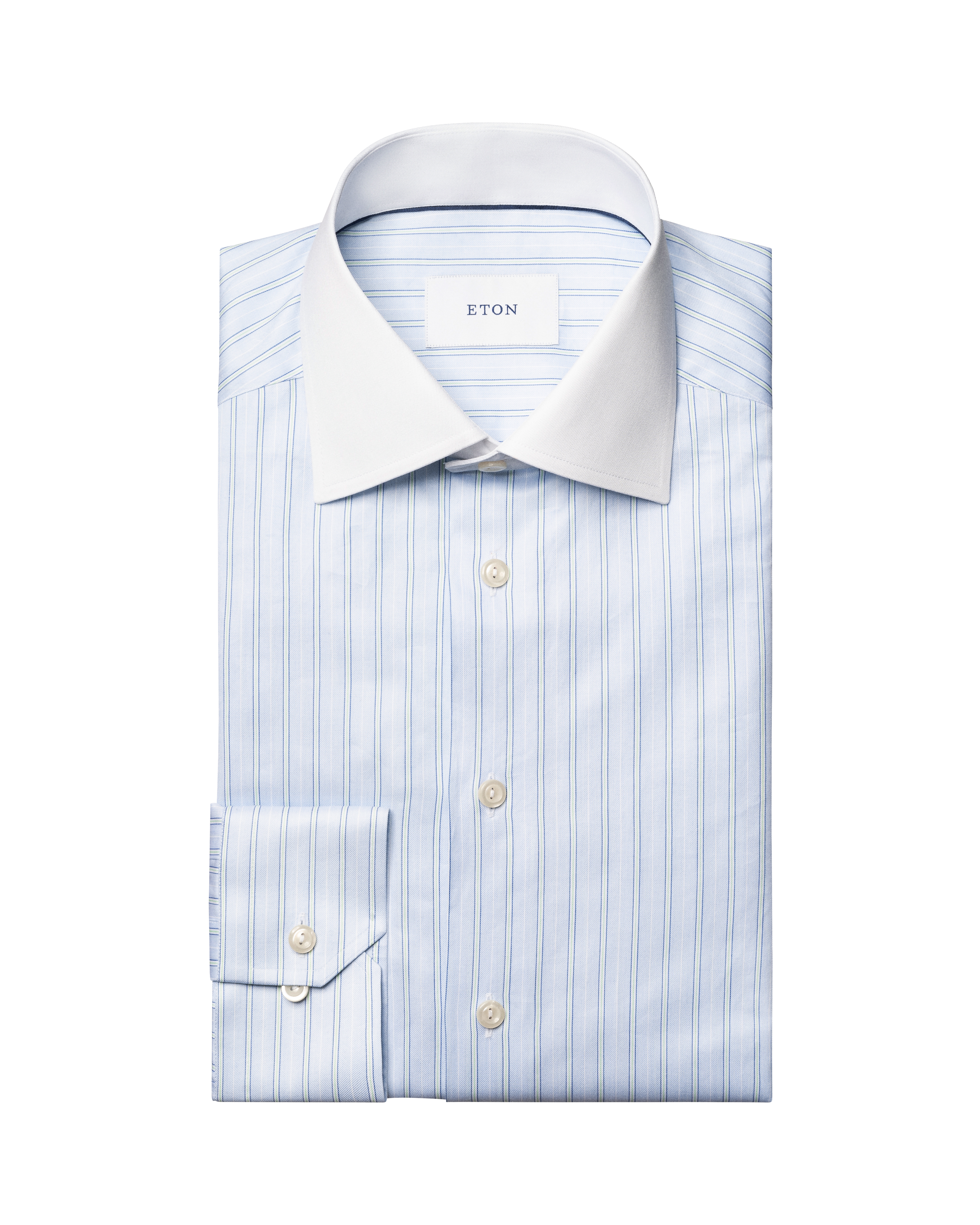 Oplev den klassiske raffinement med Etons Striped White Collar Signature Twill Slim Skjorte. Denne skjorte fra Eton kombinerer stil og komfort i en elegant pakke, der er perfekt til både formelle og afslappede anledninger. Med sine lange ærmer og en diskret ticking-stribet mønster tilføjer skjorten en subtil detalje til dit outfit, der ikke går ubemærket hen.