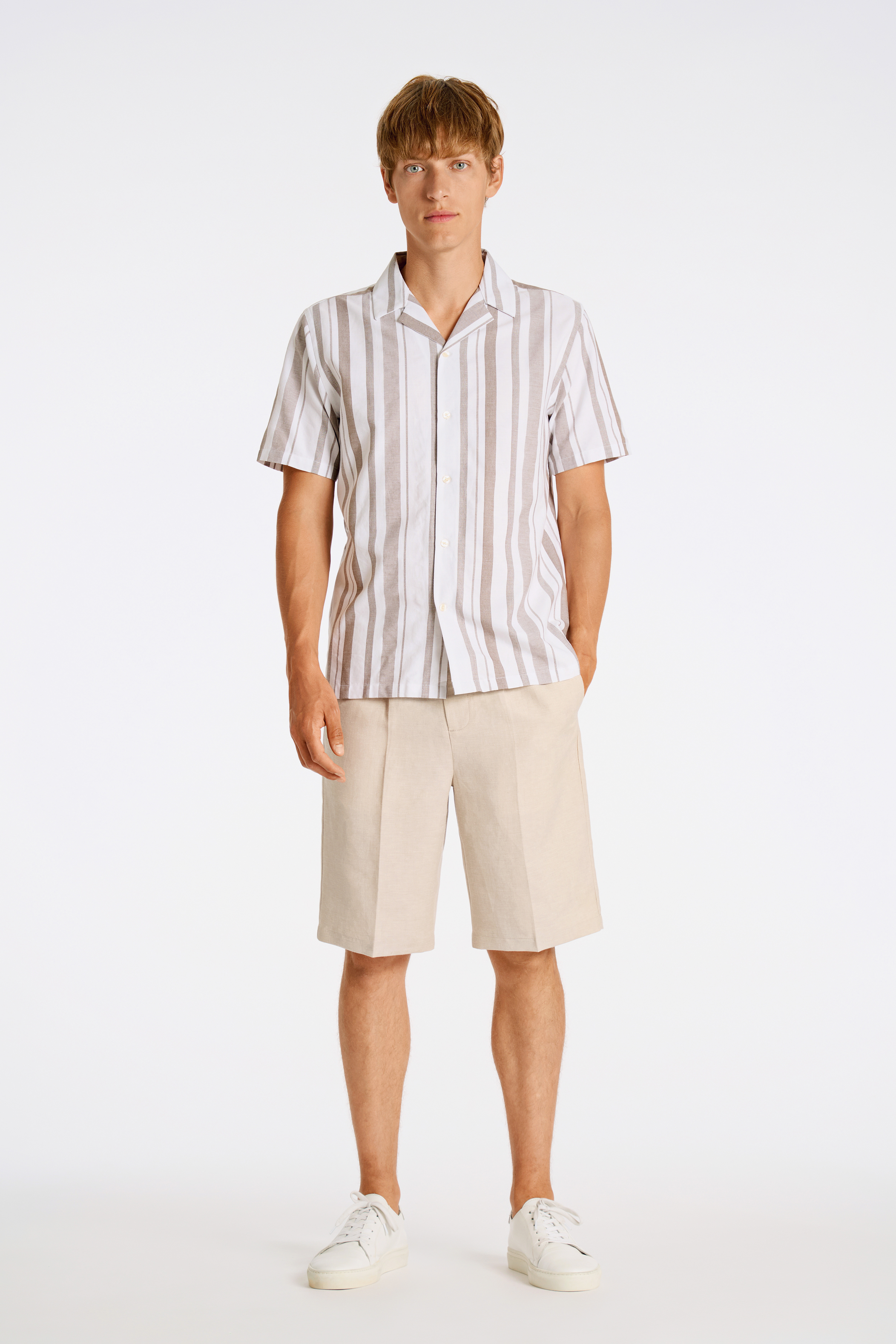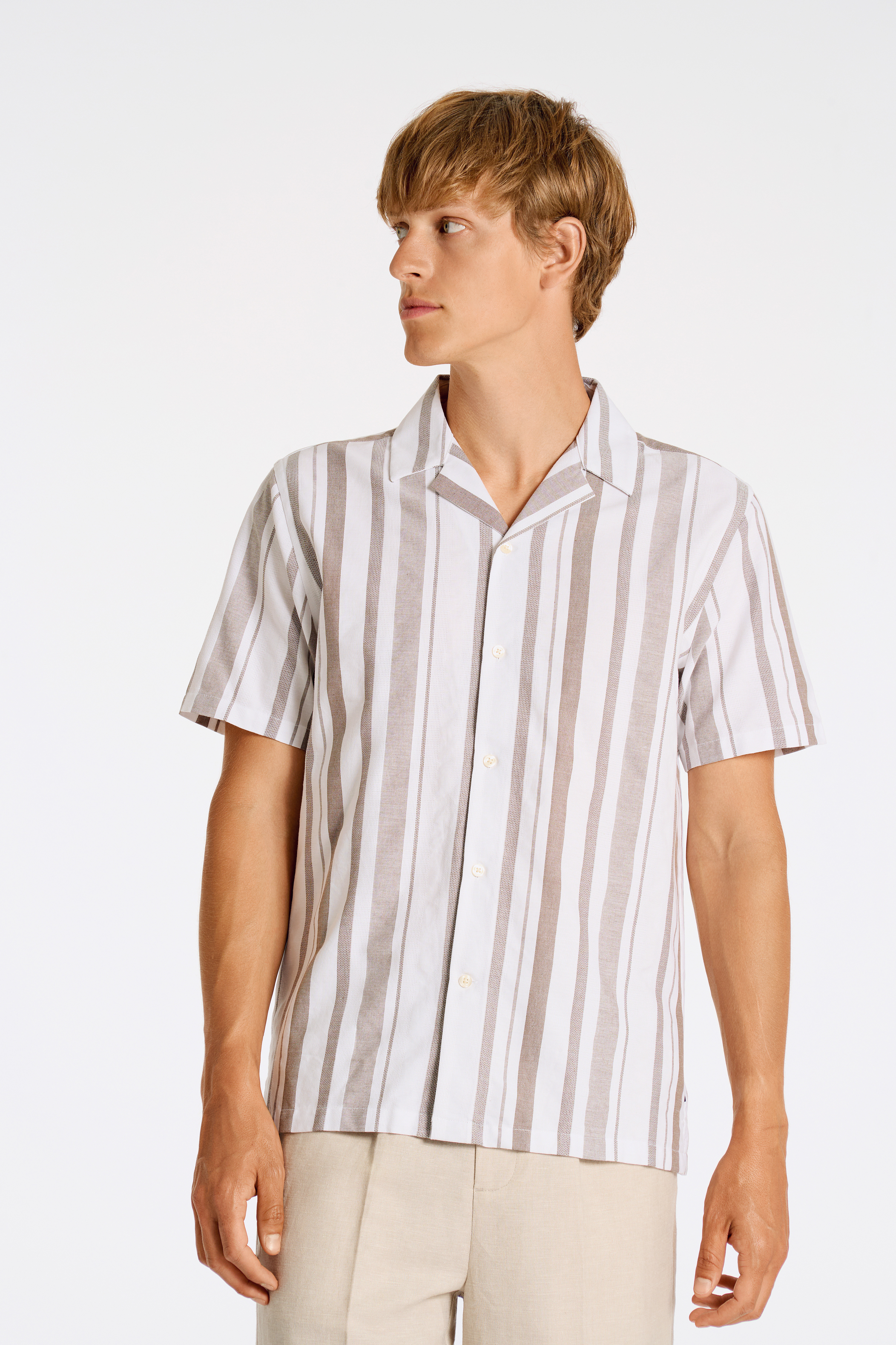 Structure Stripe Resort Skjorte, Dk Sand, 3XL