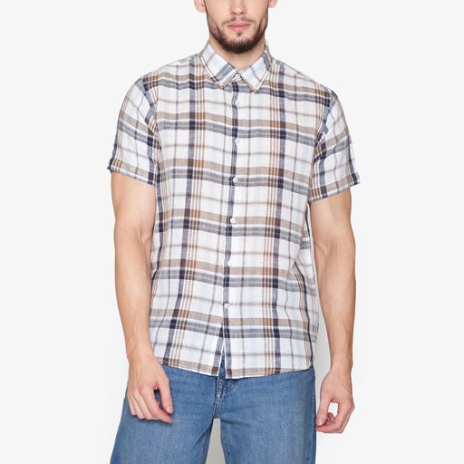 Tom Linen Check Skjorte, Blue Captain, XXL