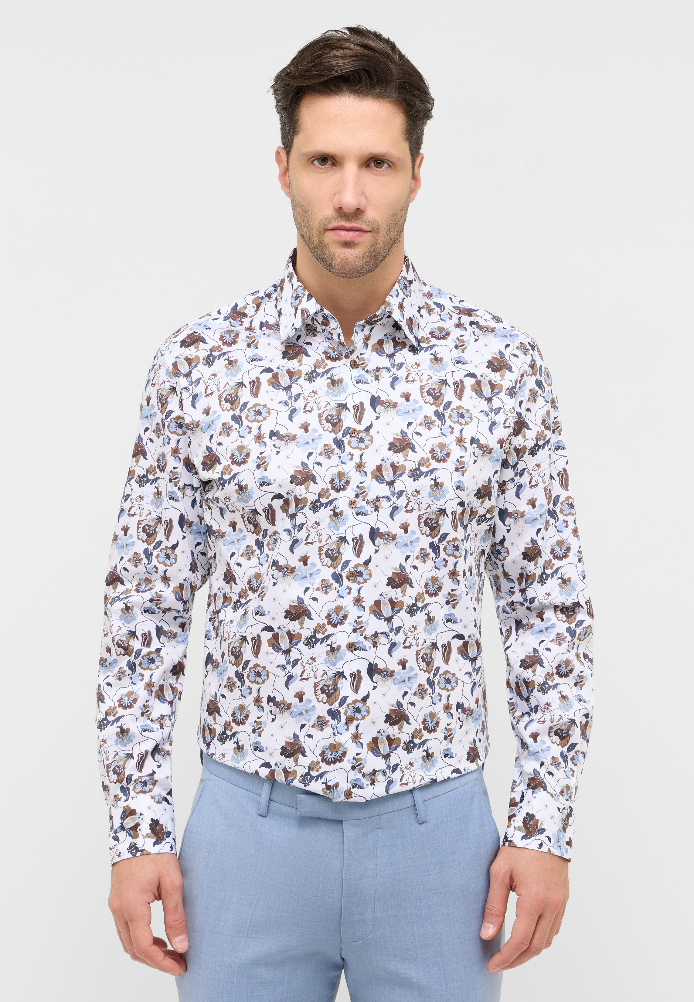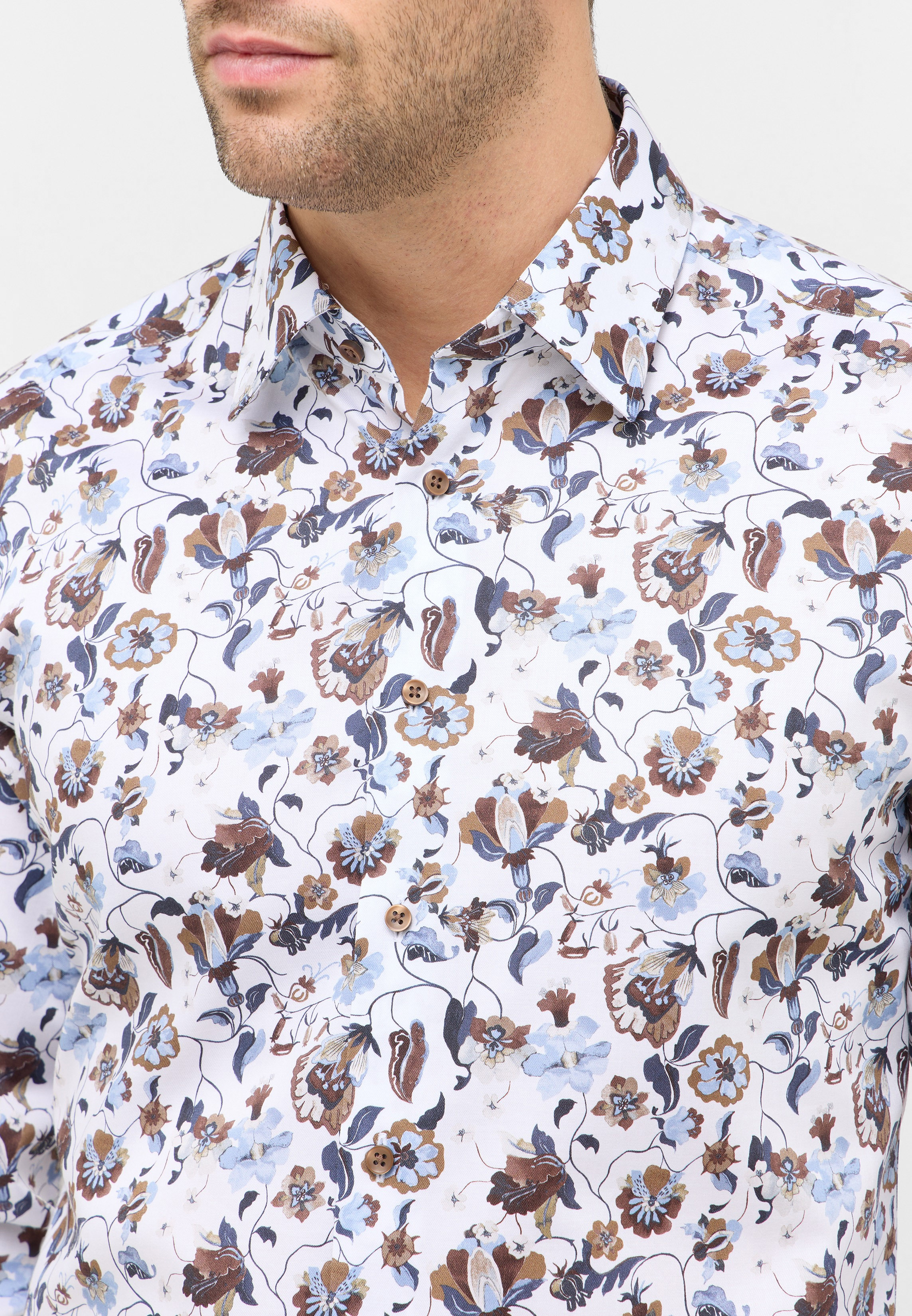 Oplev det elegante udtryk af Twill Printed Modern Fit Skjorte fra Eterna, som kombinerer klassisk stil med moderne design. Denne skjorte er udført i bomuld, hvilket sikrer både åndbarhed og komfort, ideelt til både hverdag og særlige anledninger. Det smukke blomsterprint tilføjer et sofistikeret touch, der skiller sig ud, samtidig med at det bevarer et tidløst look.