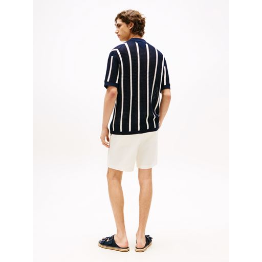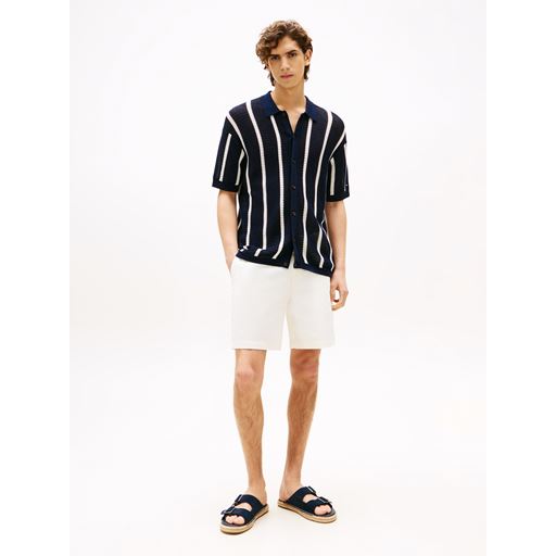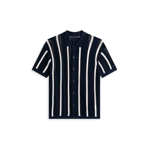 Vertical Stripe Open Knit Skjorte, Ivory Petal/Desert Sky, M