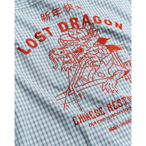 - Stort print med drage og teksten 'Lost dragon' bagpå