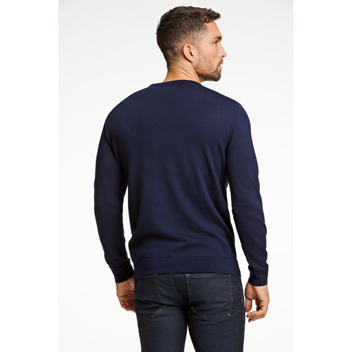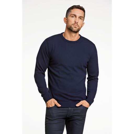 1927 Merino Crew Neck Strik, Navy, XL